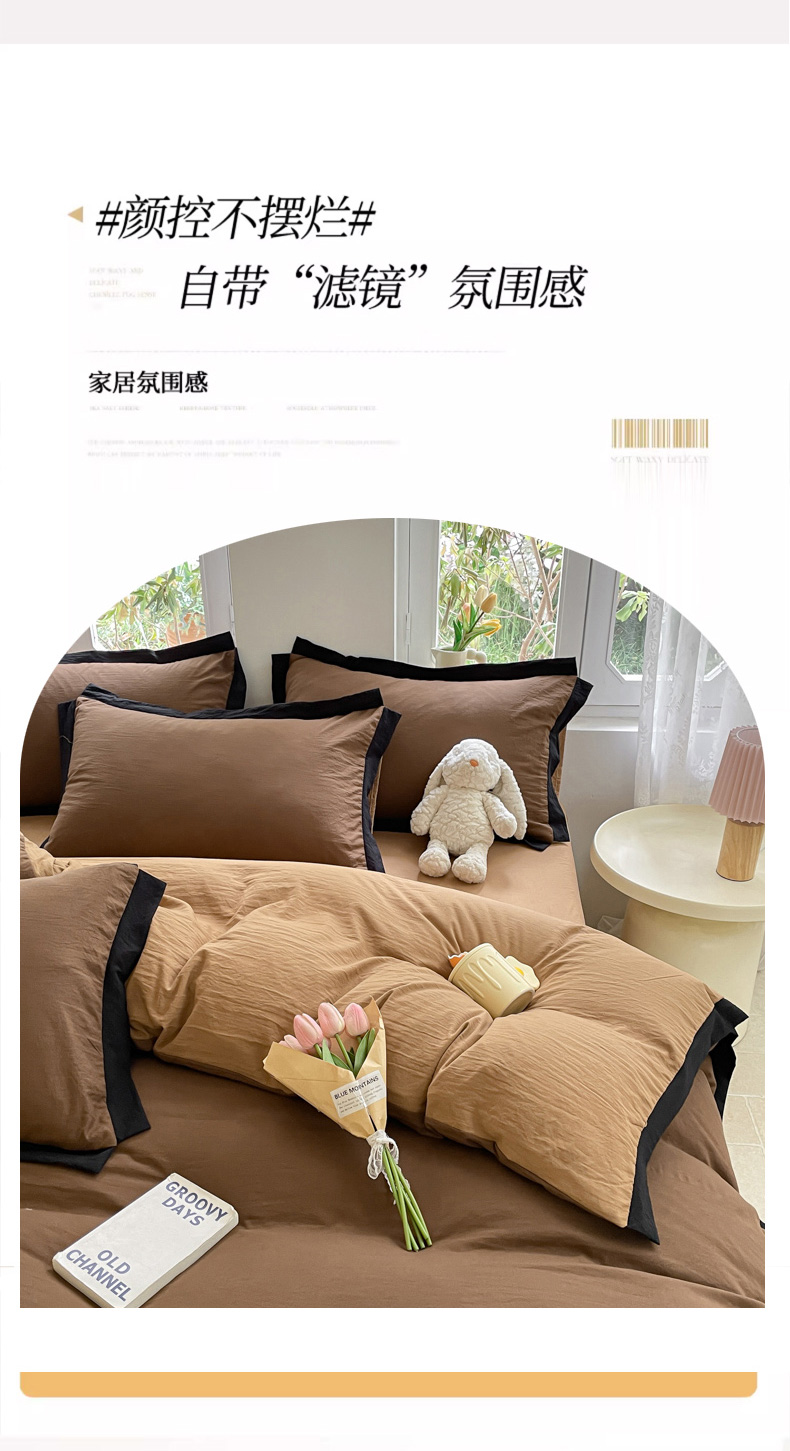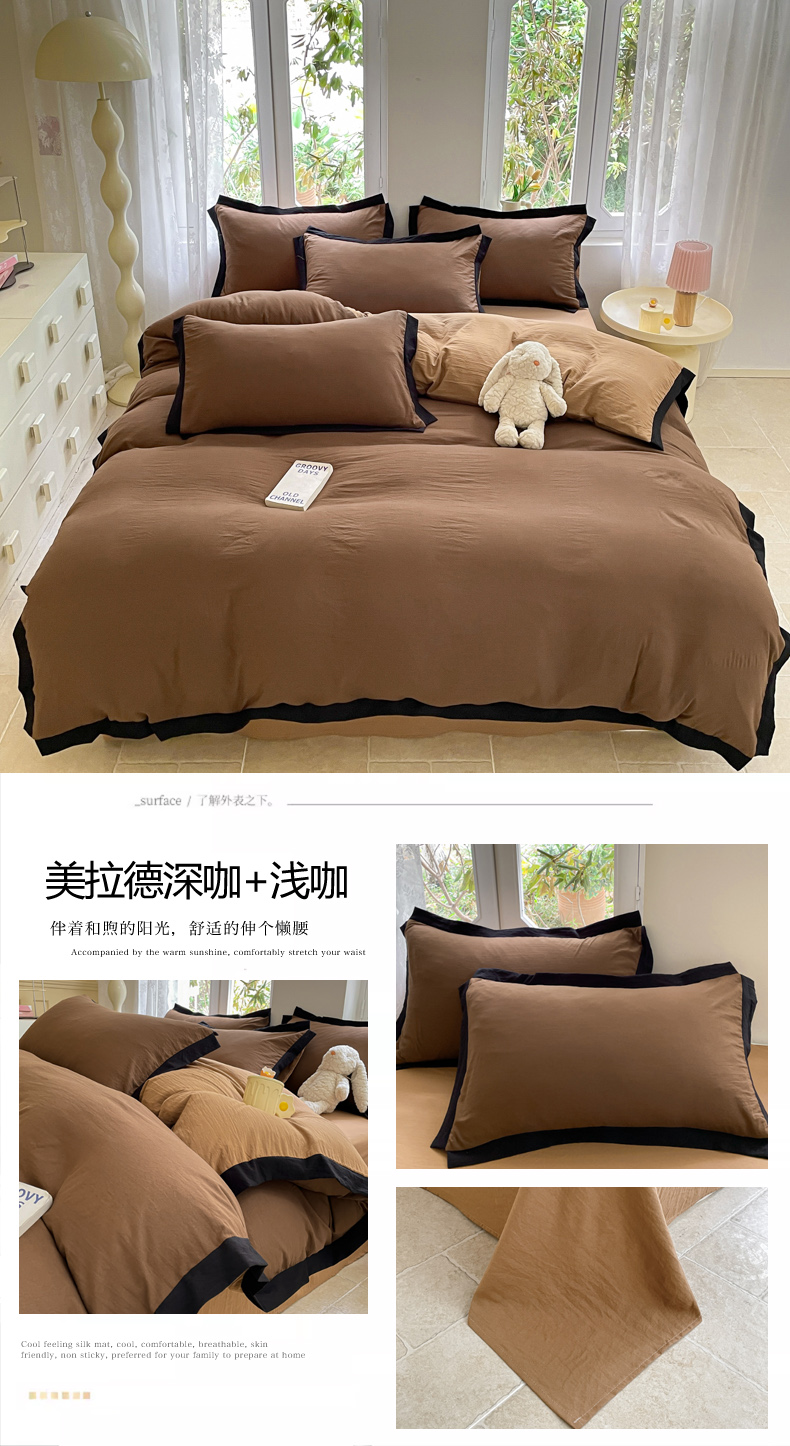 商品名称:慕澄家纺 2024新款美拉德风双拼四件套 美拉德深咖+浅咖