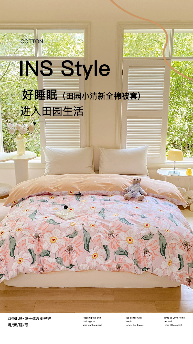 黑马家居 2025新款全棉喷气13070印花单被套 嫣然花开