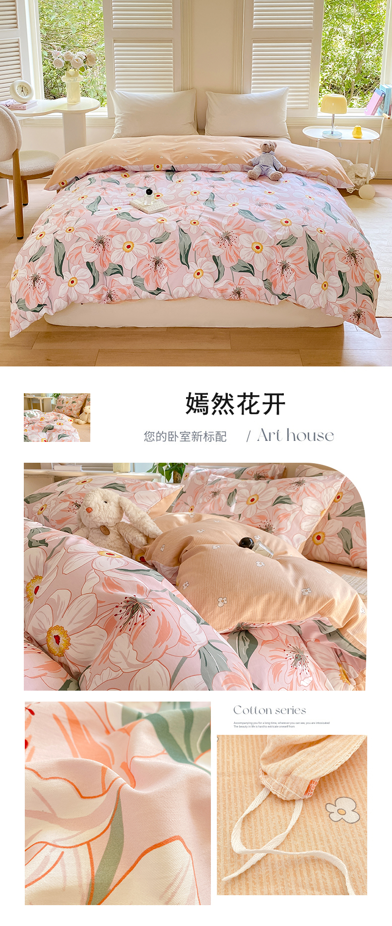 商品名称:黑马家居 2025新款全棉喷气13070印花单被套 嫣然花开
