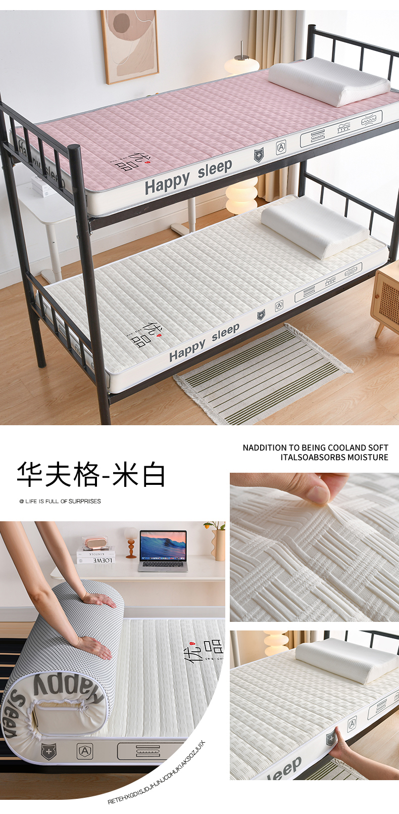 当前位置: 91家纺网 > 商品网购 > 床垫/床褥 > 普通床垫 > 顺发床垫 2025新款A类华夫格天然乳胶记忆海绵床垫学生款图 华夫格-米白