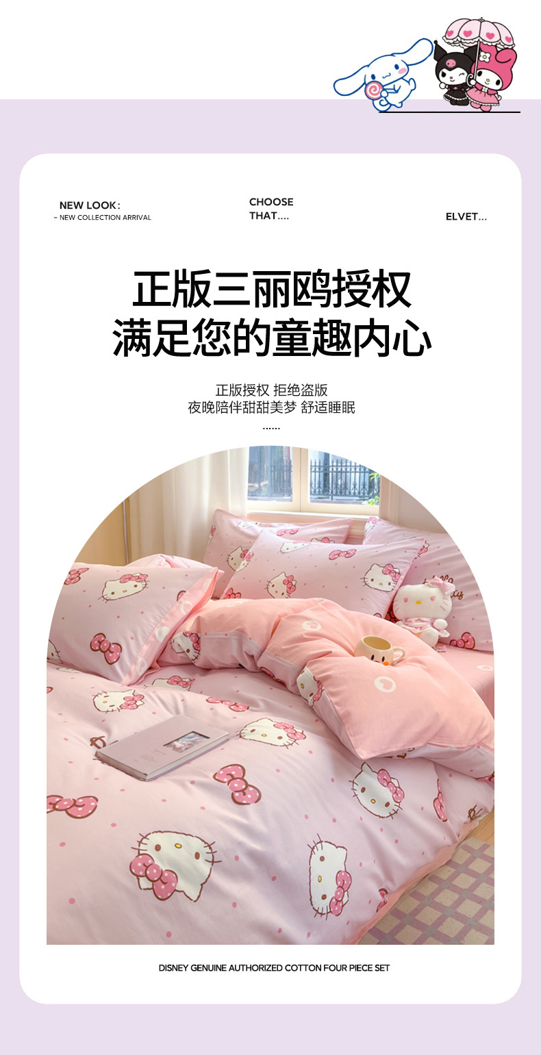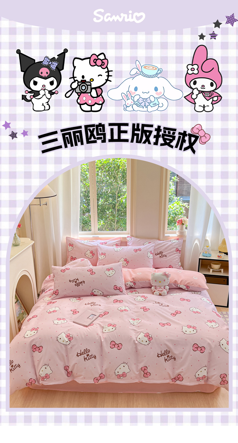 当前位置: 91家纺网 > 商品网购 > 床品套件 > 四件套 > 全棉普通四件套 > 博雅 2024新款三丽鸥全棉印花卡通四件套 粉色蝴蝶结KT