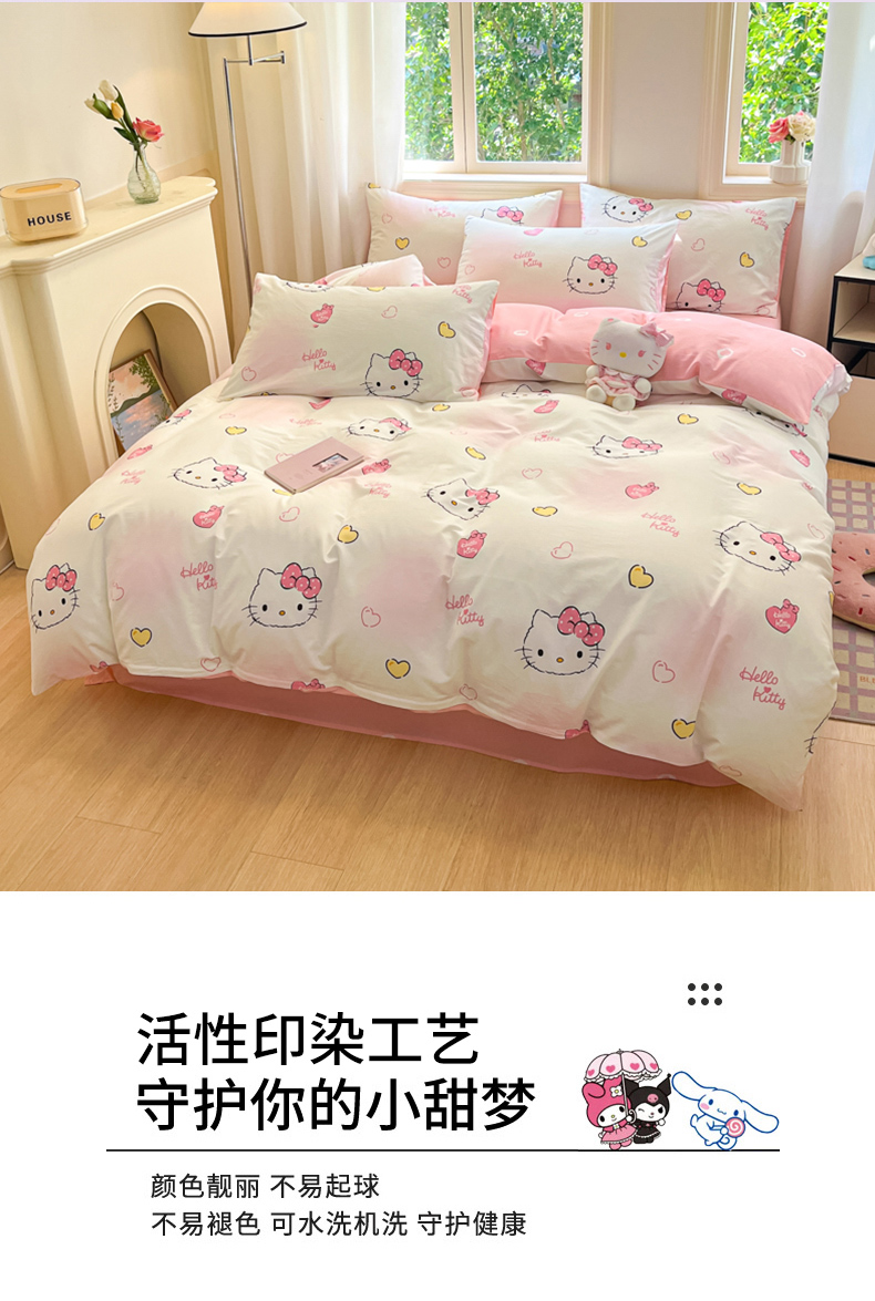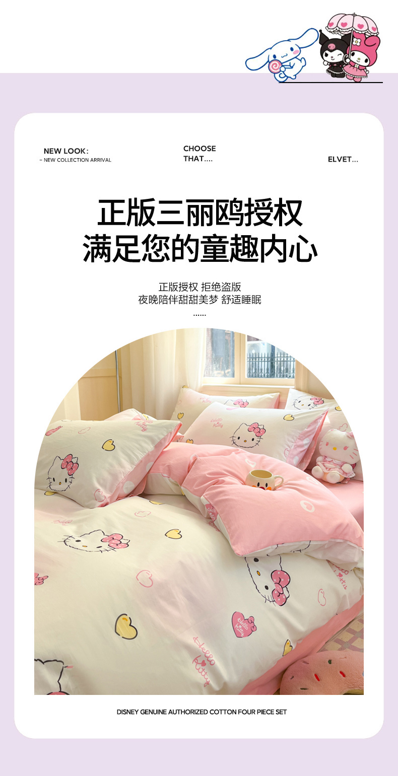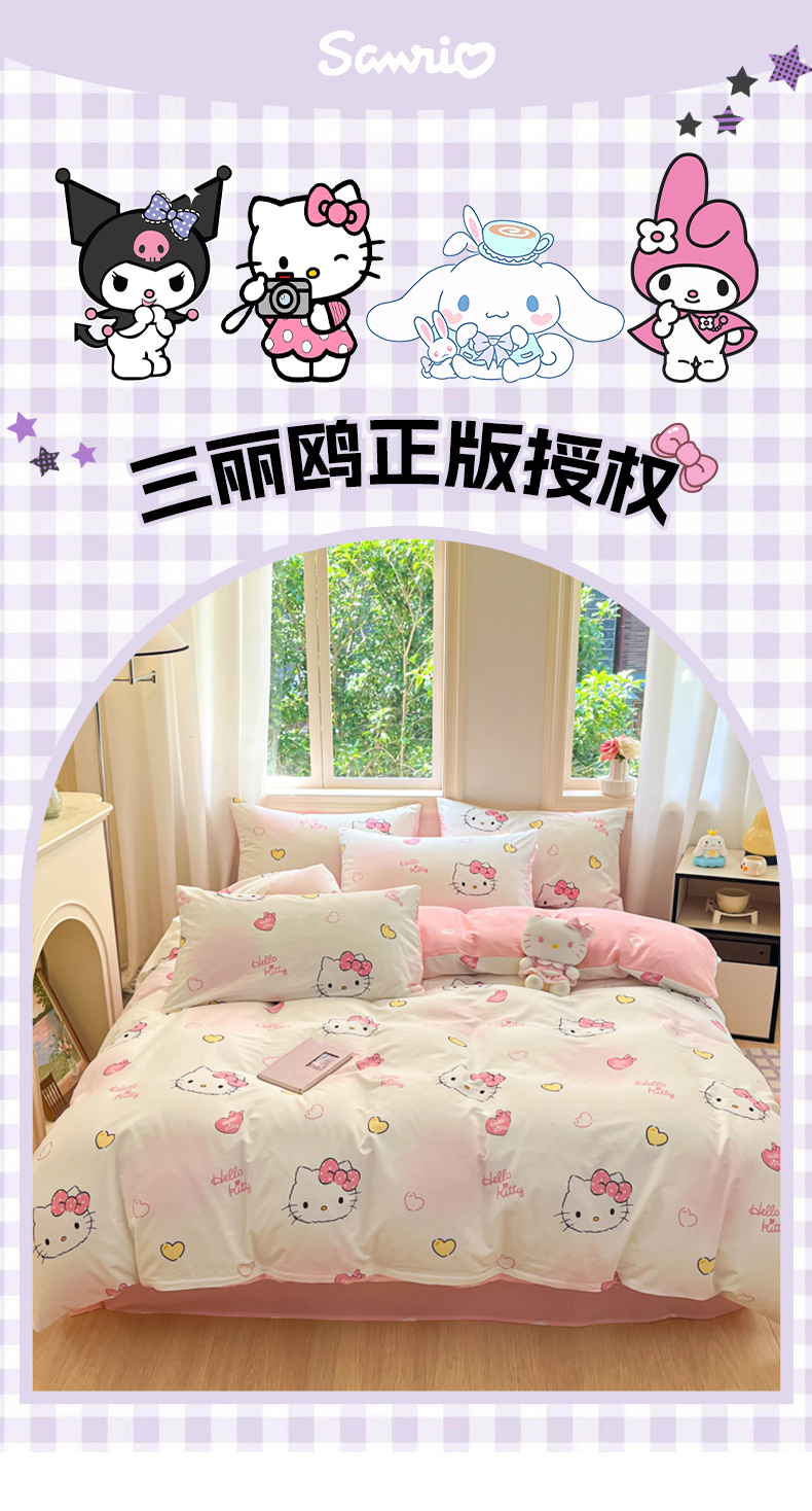 当前位置: 91家纺网 > 商品网购 > 床品套件 > 四件套 > 全棉普通四件套 > 博雅 2024新款三丽鸥全棉印花卡通四件套 彩色KT