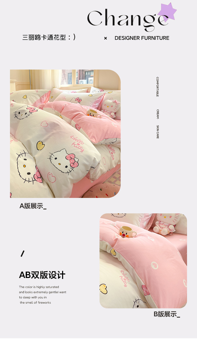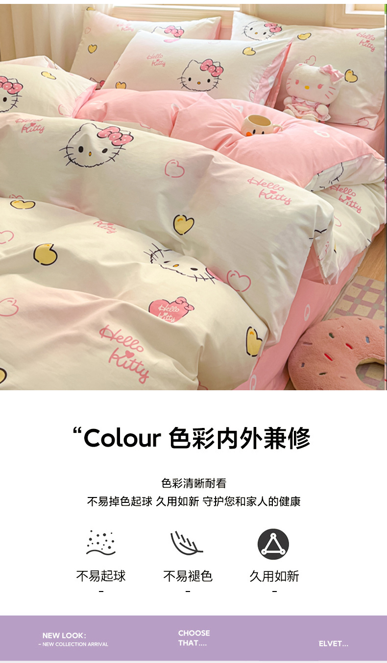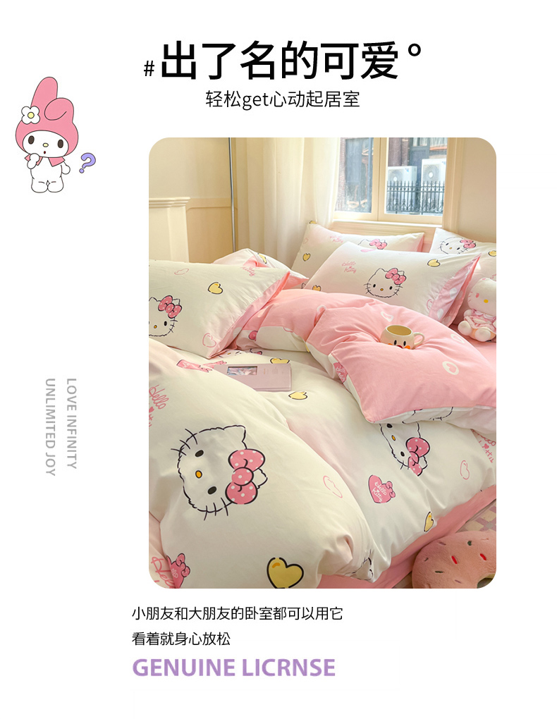 当前位置: 91家纺网 > 商品网购 > 床品套件 > 四件套 > 全棉普通四件套 > 博雅 2024新款三丽鸥全棉印花卡通四件套 彩色KT