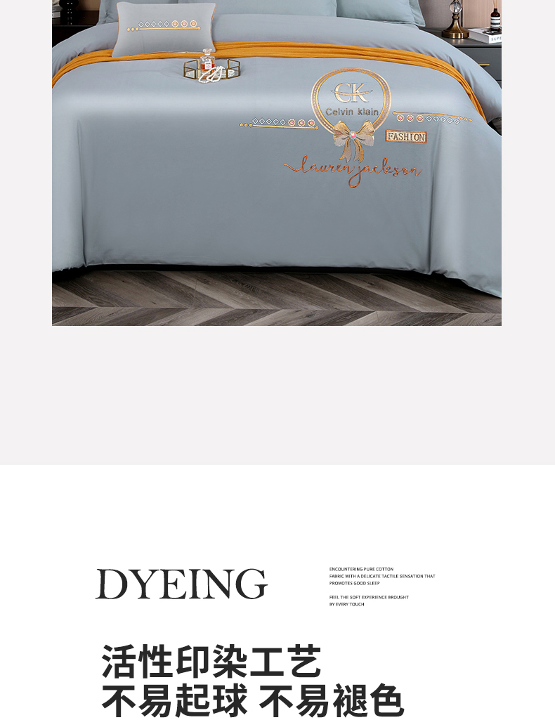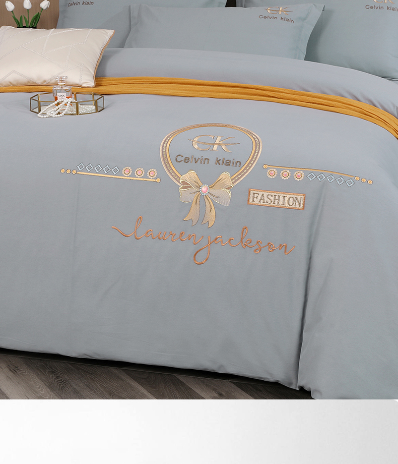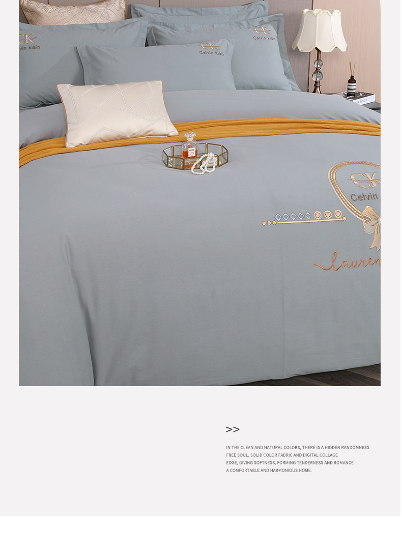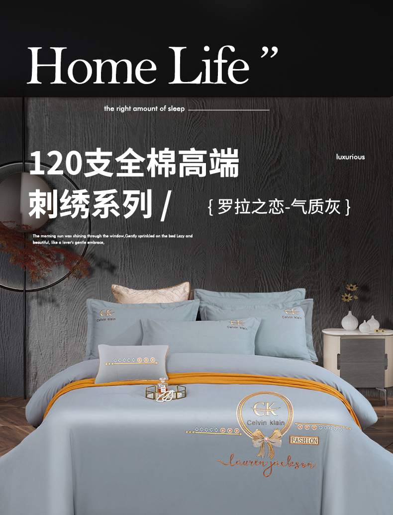 商品名称:2026秋冬新品全棉磨毛刺绣120支四件套系列-罗拉之恋 罗拉之恋-气质灰