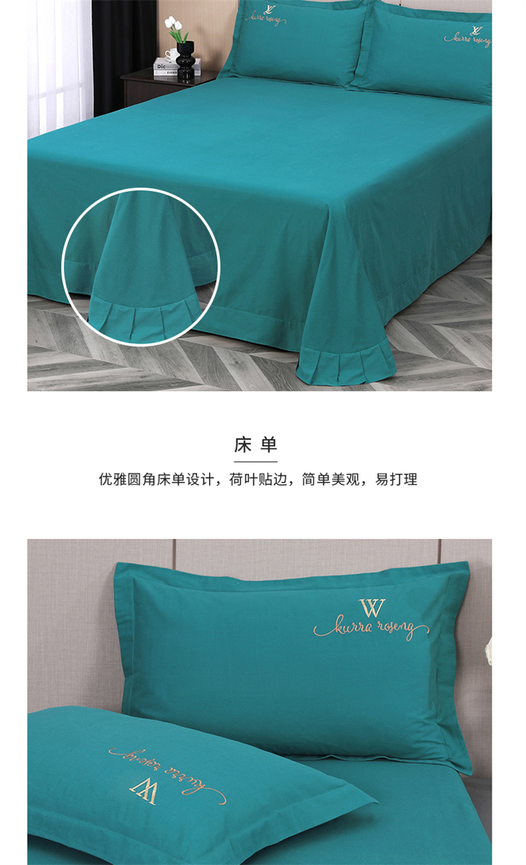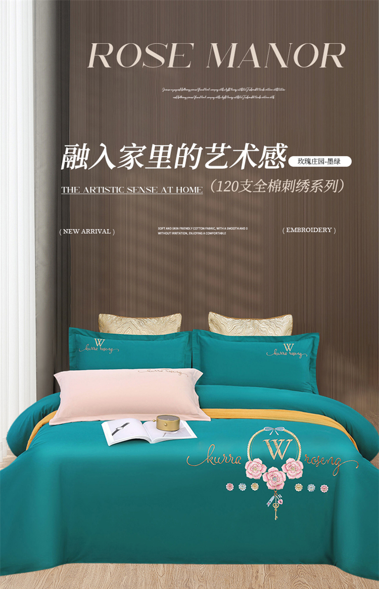 2026秋冬新品全棉磨毛刺绣120支四件套系列-玫瑰庄园 玫瑰庄园-墨绿