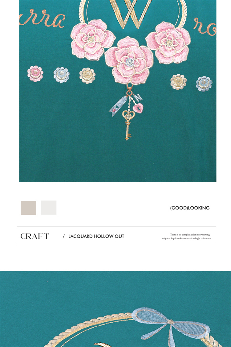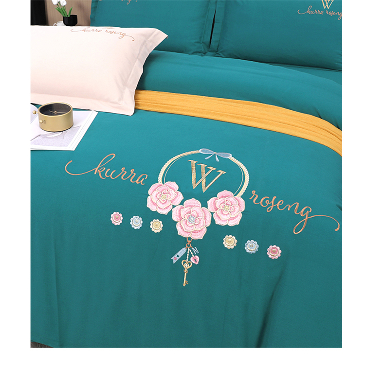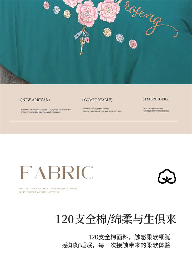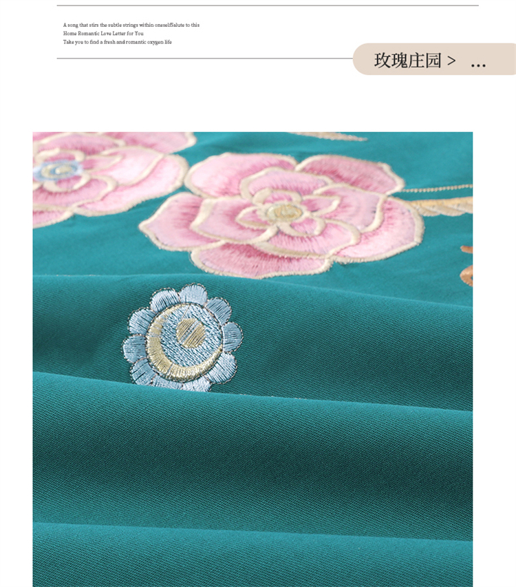 商品名称:2026秋冬新品全棉磨毛刺绣120支四件套系列-玫瑰庄园 玫瑰庄园-墨绿