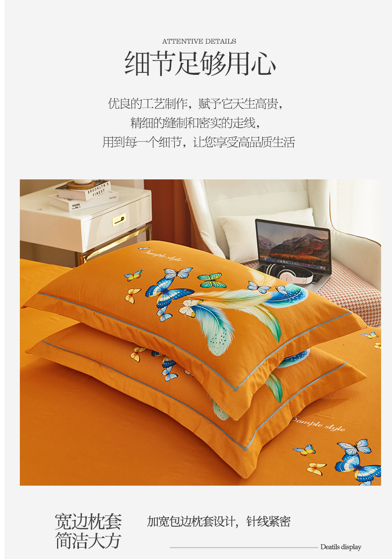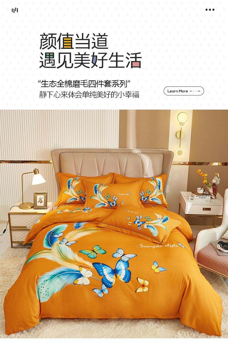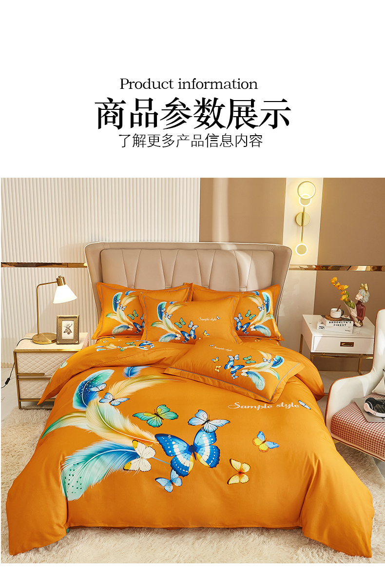 (总)雲归梦 2021新款全棉生态磨毛刺绣四件套,慕思-橙色,慕思-粉紫,慕思-灰,慕思-米黄,慕思-青绿,慕思-天蓝