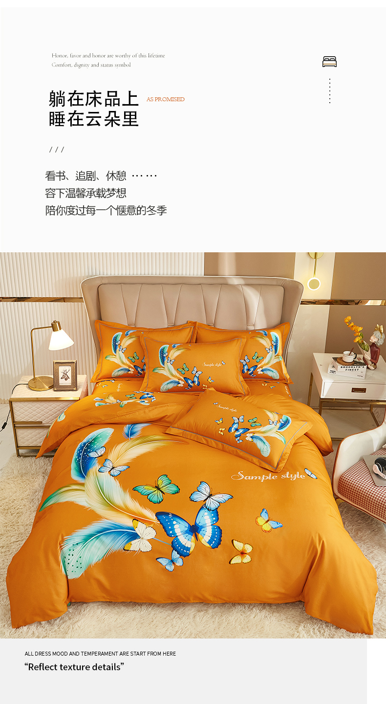 (总)雲归梦 2025年新款全棉纯棉活性印花四件套,璀璨花开-桔,蝶恋花,都市英伦-桔,兜兜花园,古韵山河,妮彩,偏偏花语-紫,清香花曼,时刻相伴,阳光花朵