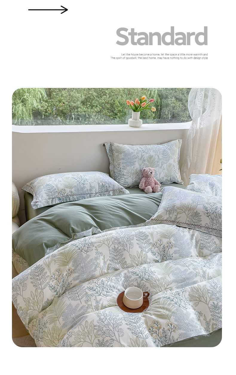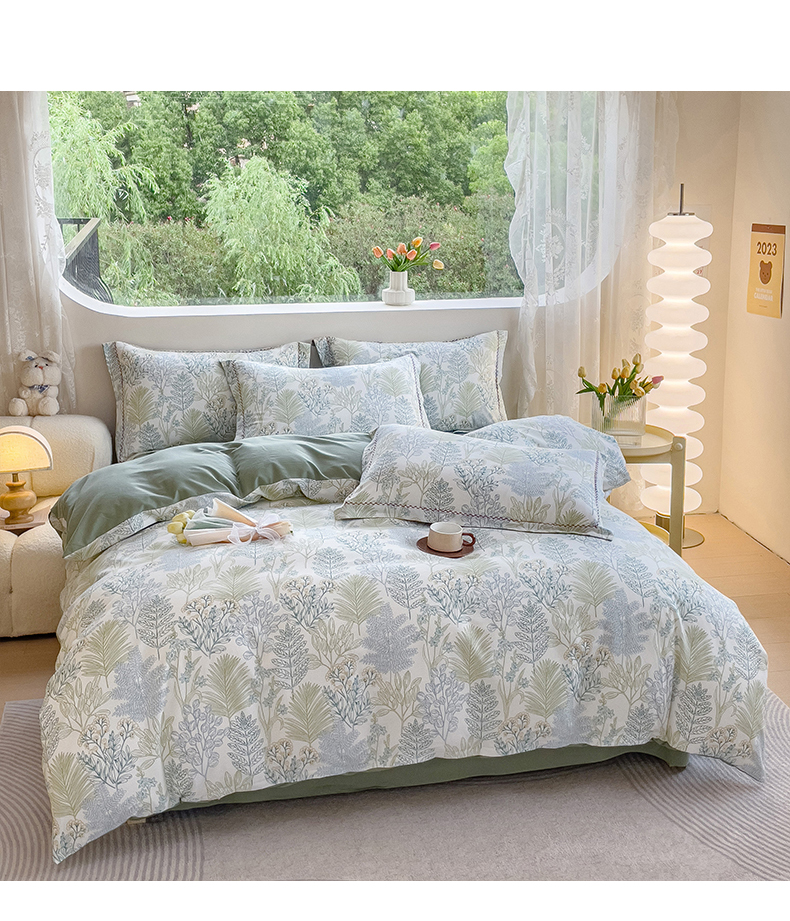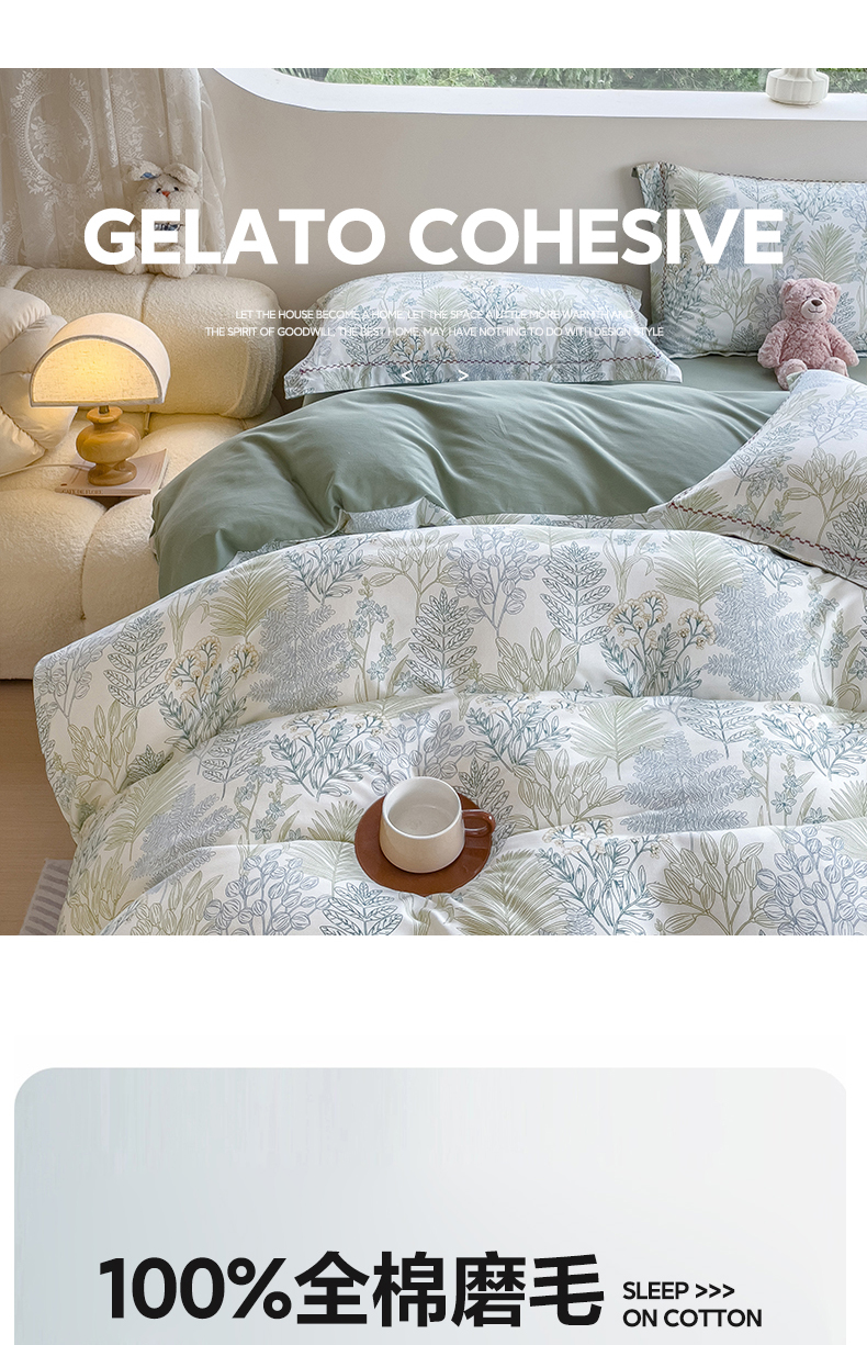 商品名称:帅露家纺 2025新款全棉超柔加厚生态磨毛四件套 晨晓-绿
