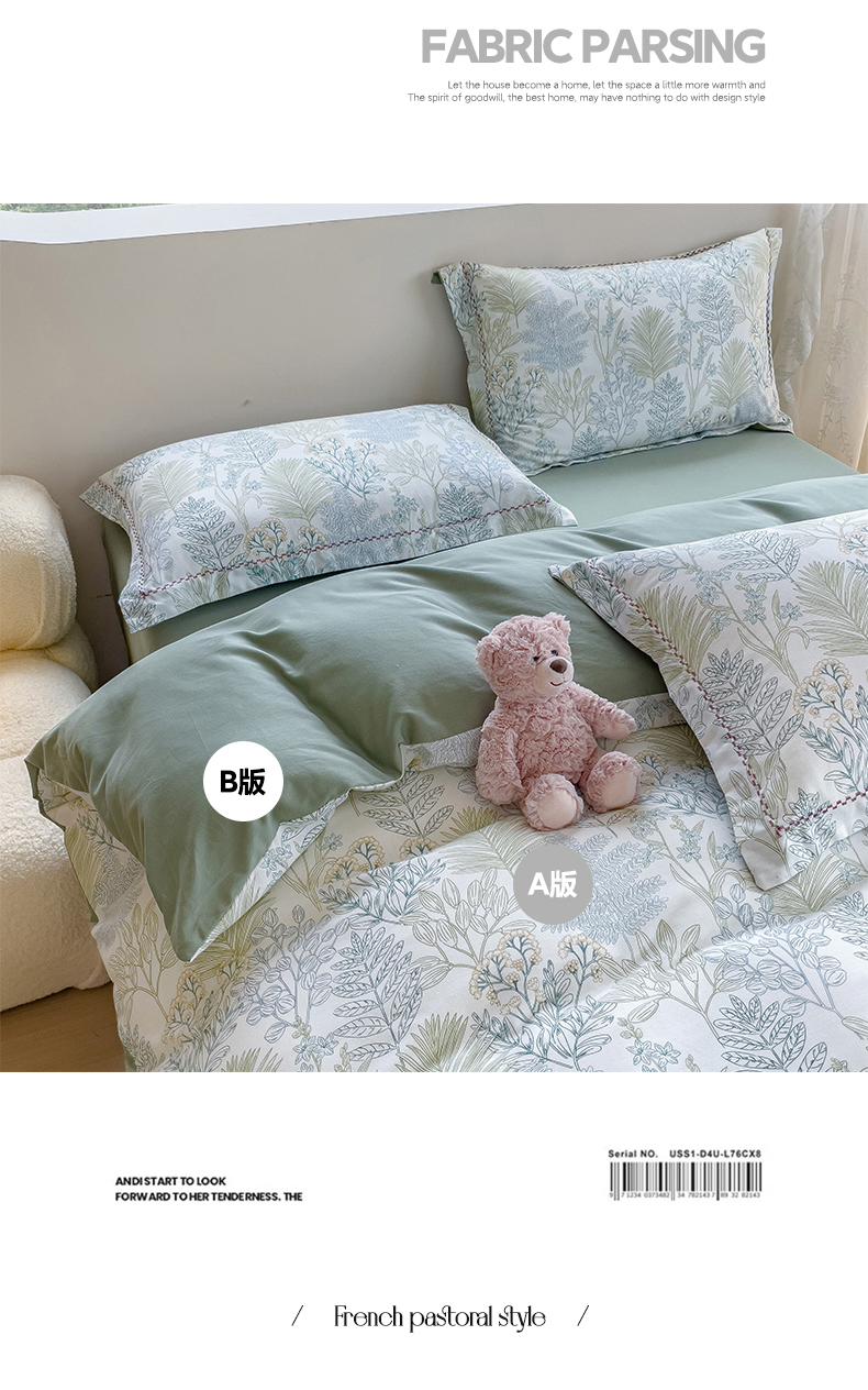 (总)帅露家纺 2025新款A类棉麻活性印染四件套系列,花间意境-红,花间意境-灰,花香满园-红,素锦-咖,香叶时代,映霜-灰,映霜-绿