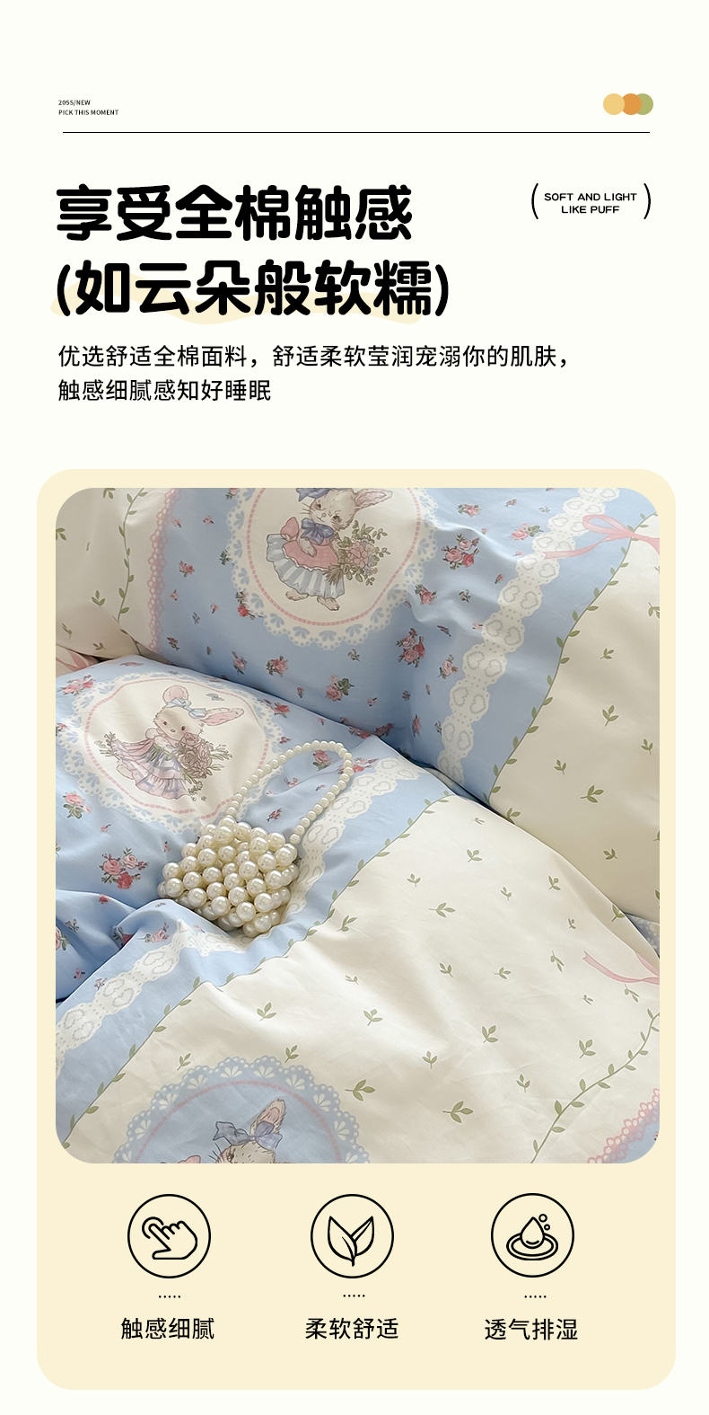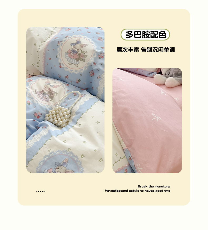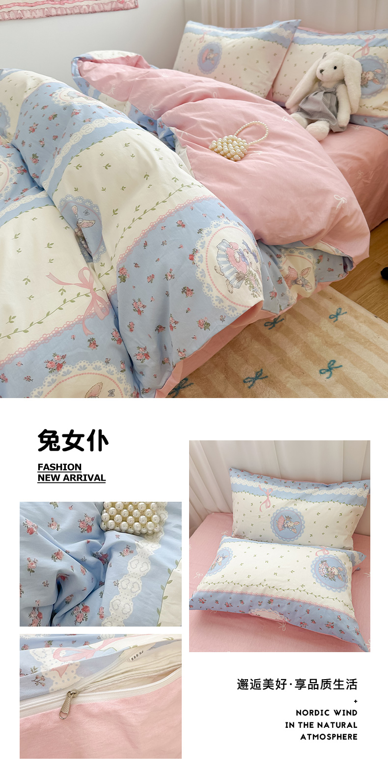 商品名称:瑞莱 2024新款洛丽塔风全棉印花四件套 兔女仆