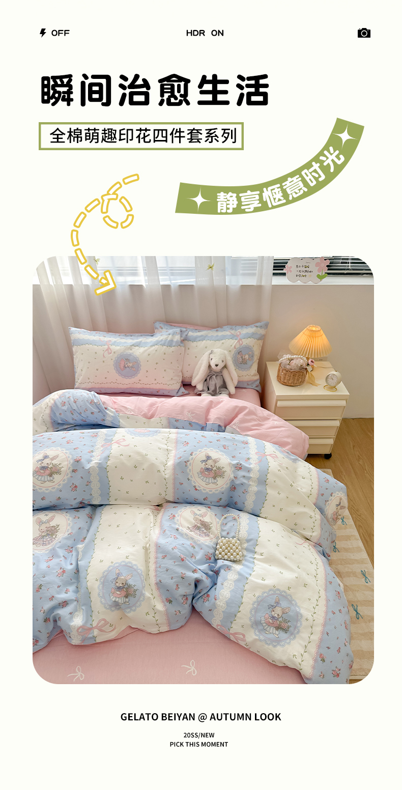 瑞莱 2024新款洛丽塔风全棉印花四件套 兔女仆