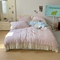 轻奢坊 2024新款法式花边蝴蝶结水洗棉四件套 花边浅蓝中格