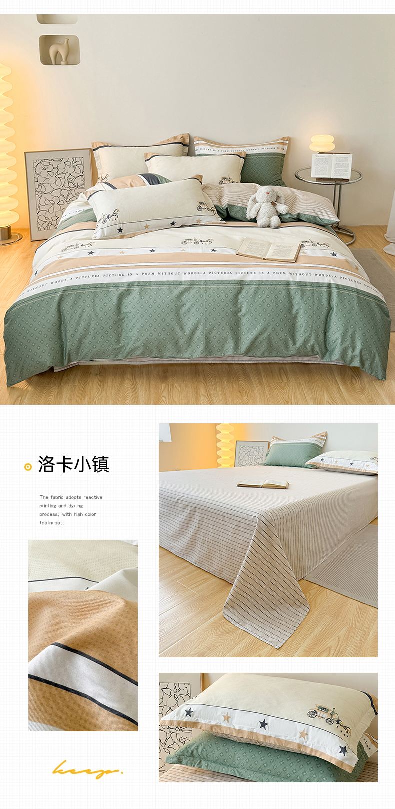 慕木家纺 2025新款全棉印花四件套 洛卡小镇