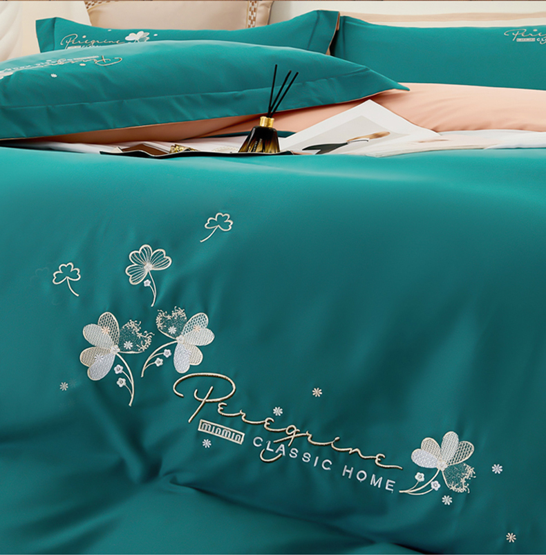 U品汇 2024新品生态加厚长绒棉纯棉绣花60S全棉磨毛刺绣四件套AB版双面绣花 香芬-孔雀兰