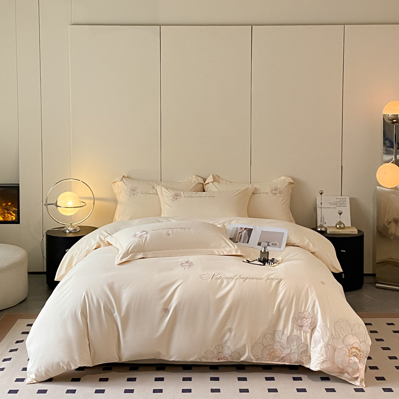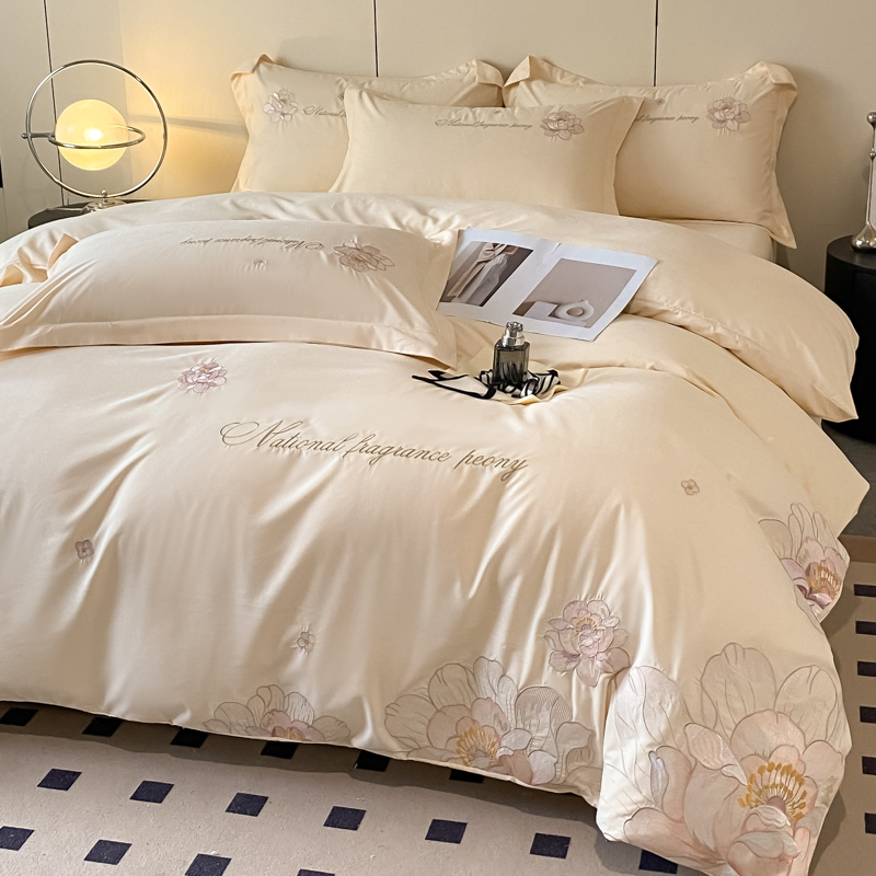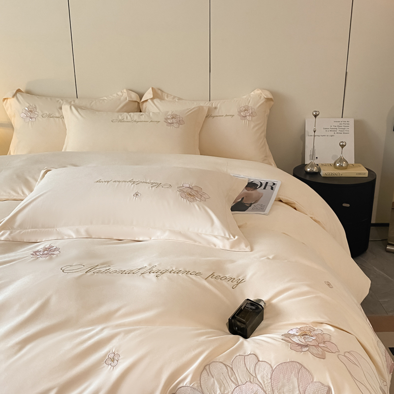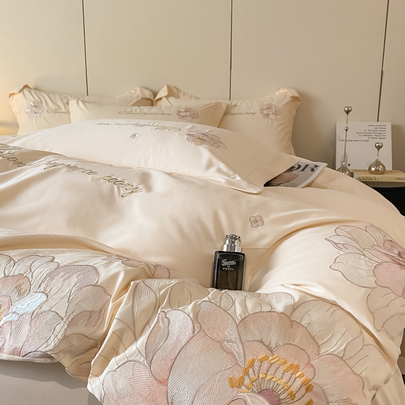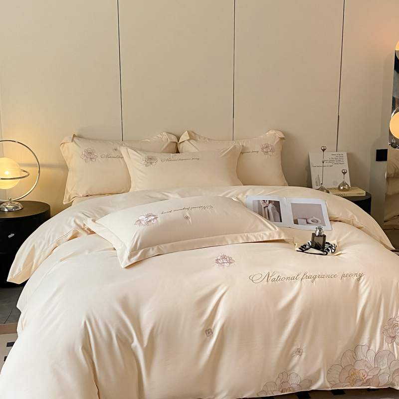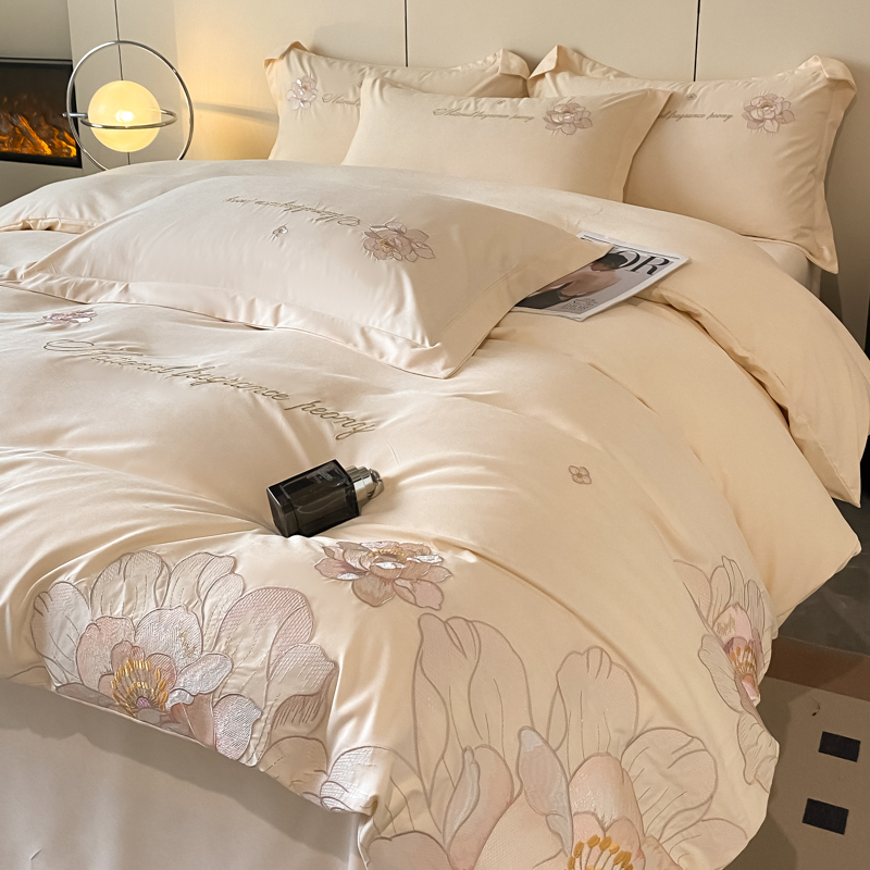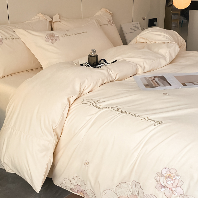 玉海棠 2024新款舒适亲肤刺绣四件套-赛琳娜系列 赛琳娜-米白