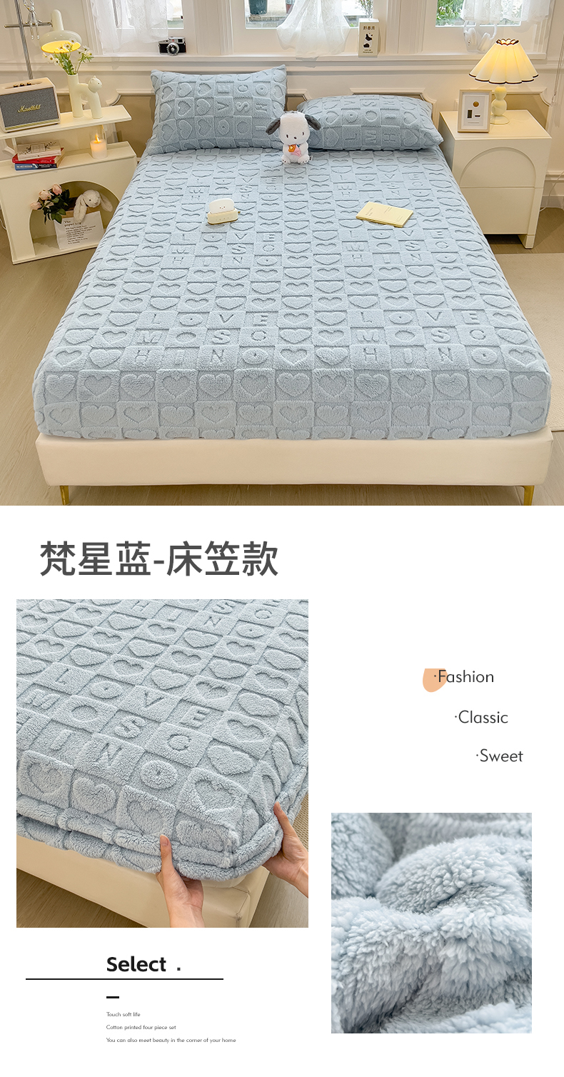 (总)乐家欣 2025新款A类塔芙绒舒棉绒床笠-花朵系列,花朵-奶白,花朵-粉玉,花朵-湖蓝,花朵-米驼,花朵-桑绿,花朵-雾灰