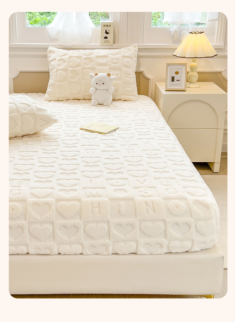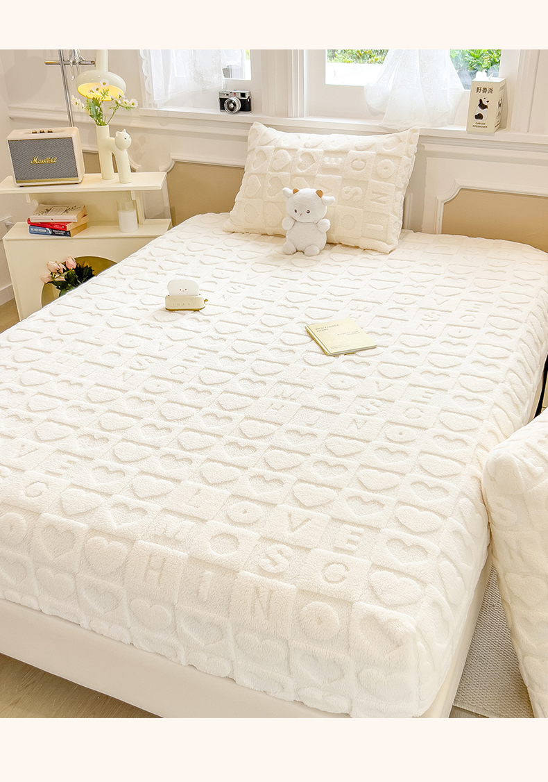 乐家欣 2024新款A类针织绒绒床笠系列 典雅白-床笠款