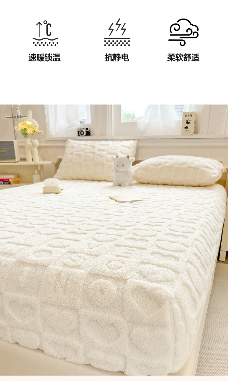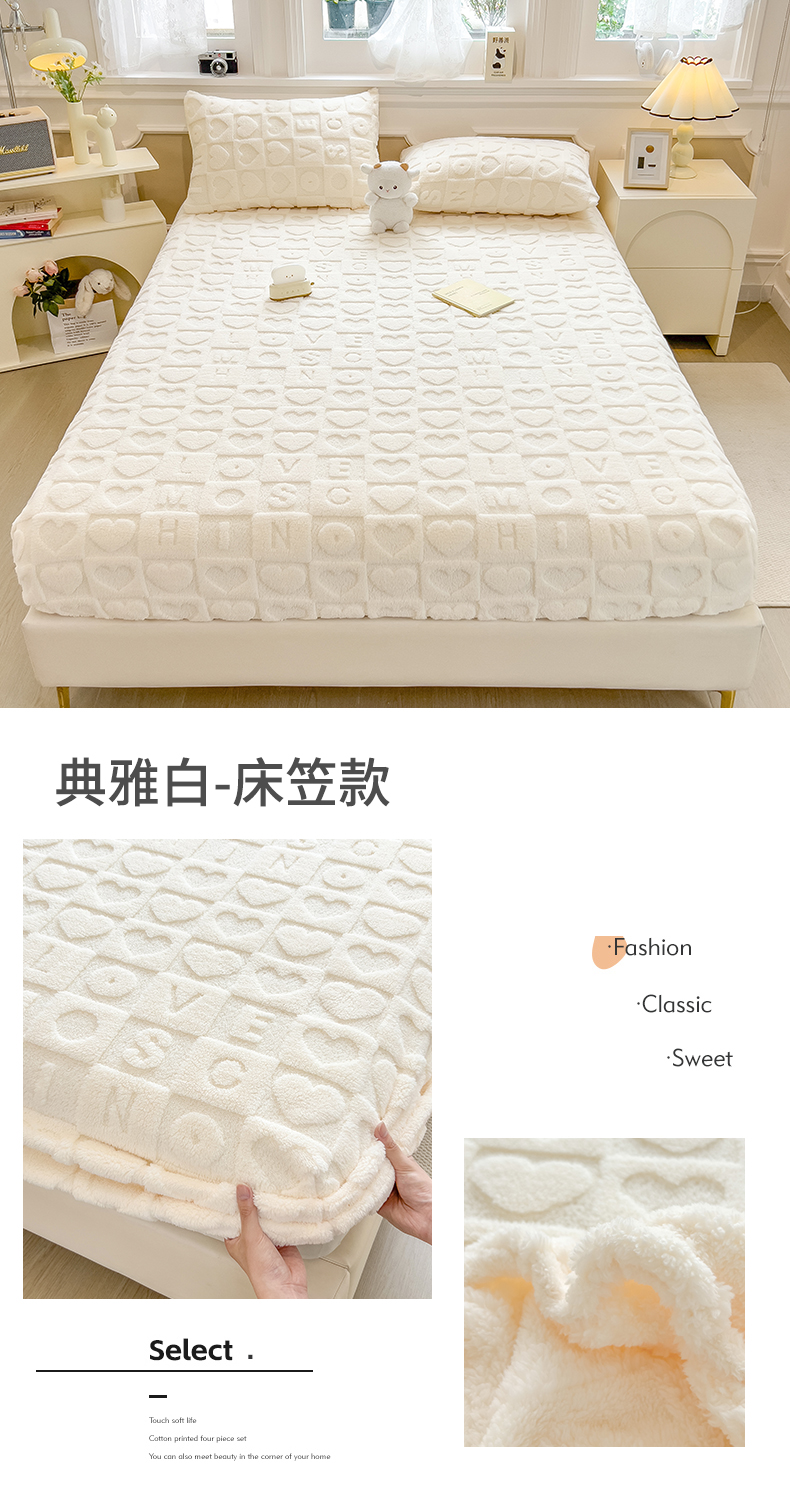 商品名称:乐家欣 2024新款A类针织绒绒床笠系列 典雅白-床笠款