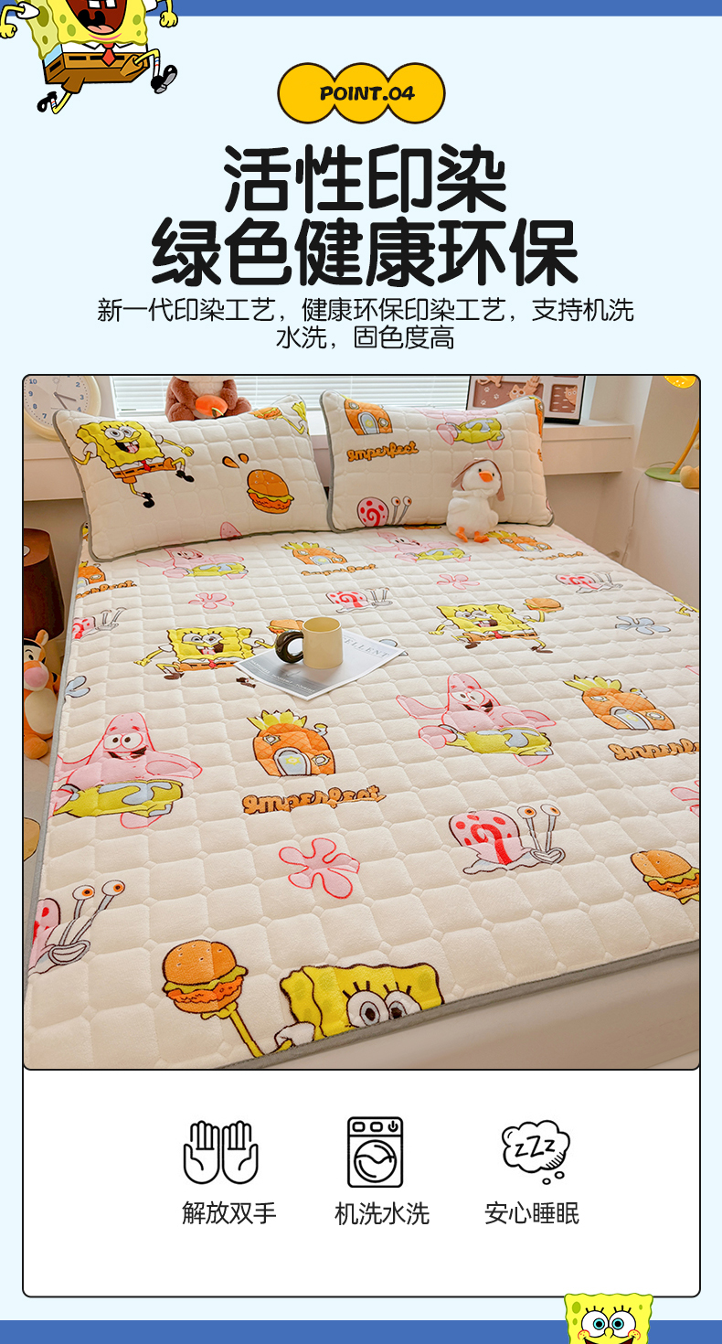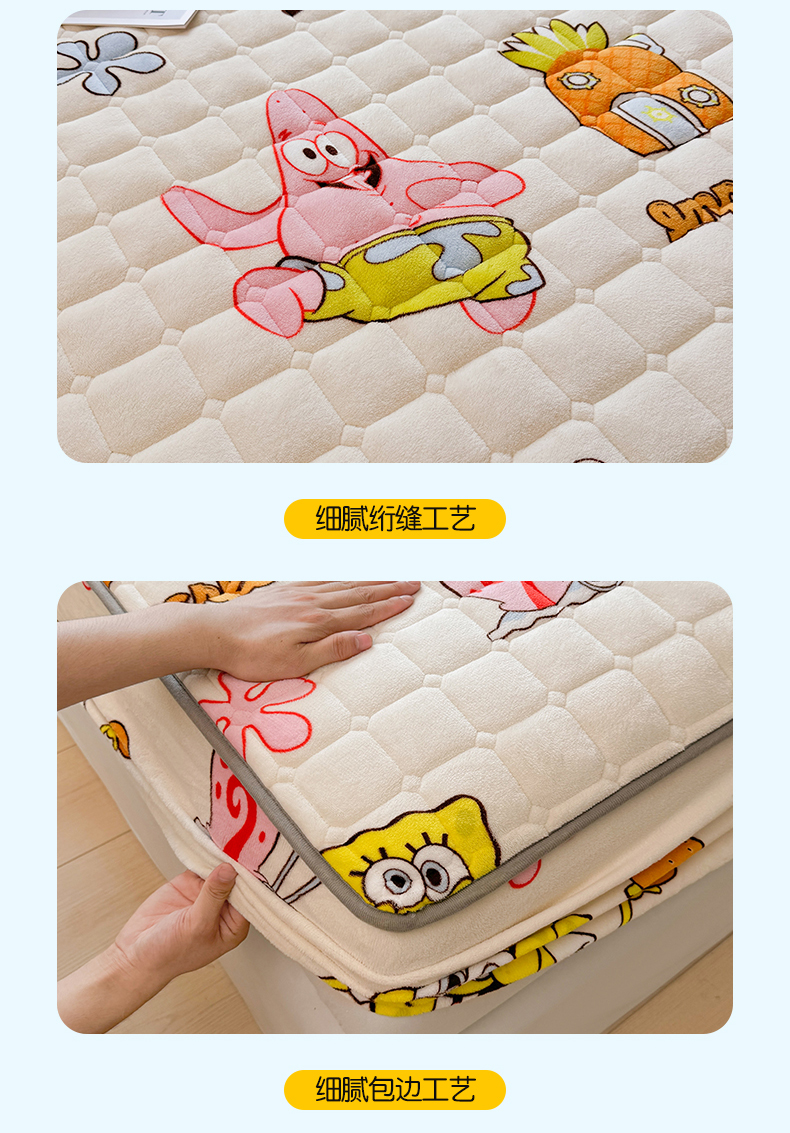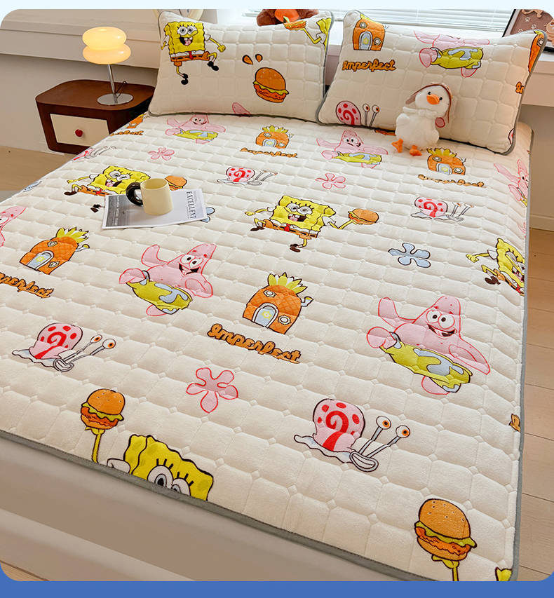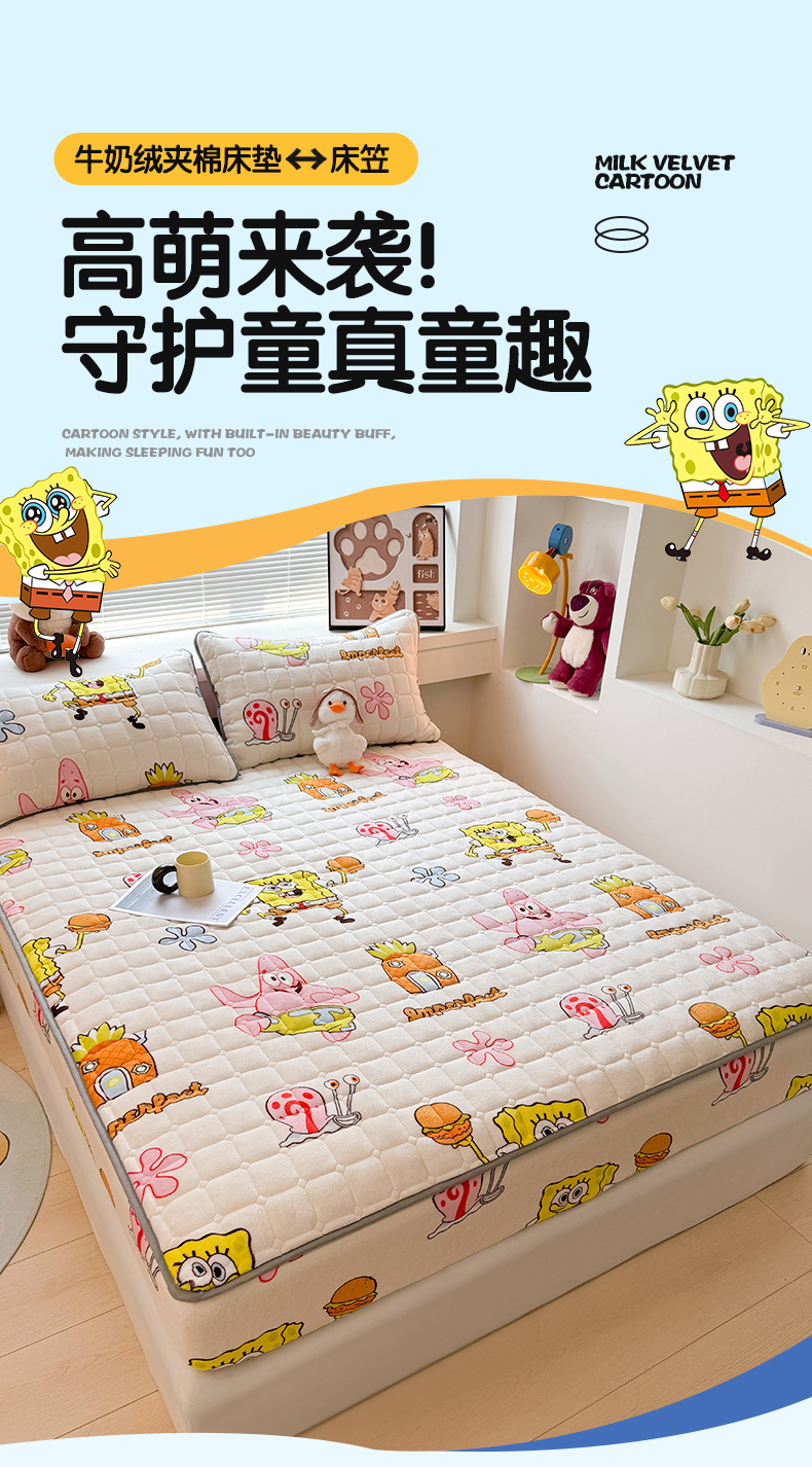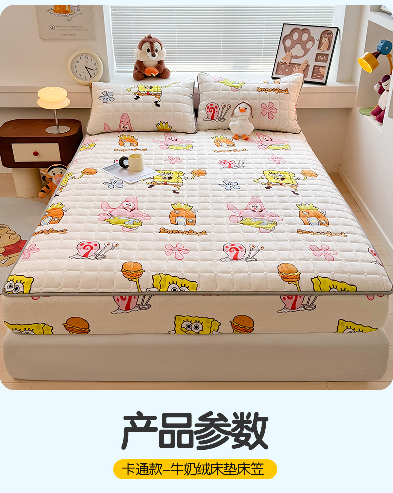 商品名称:迪梦思 2024新款正版授权卡通牛奶绒床垫床护垫 学生床垫床笠 海绵乐园-床笠款