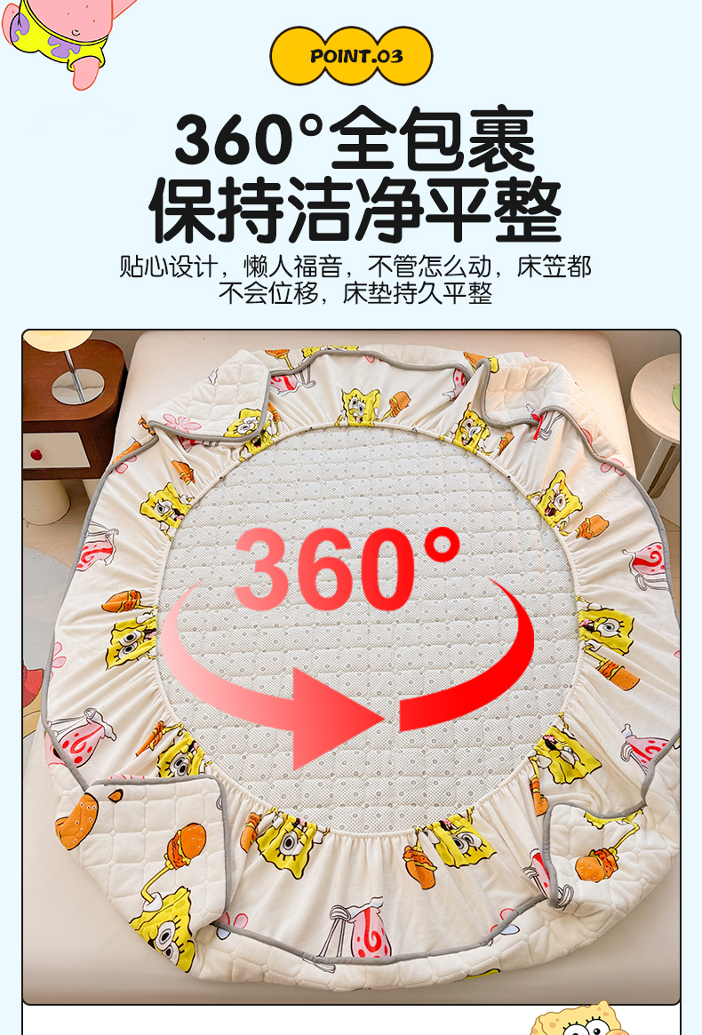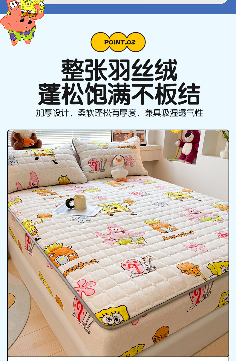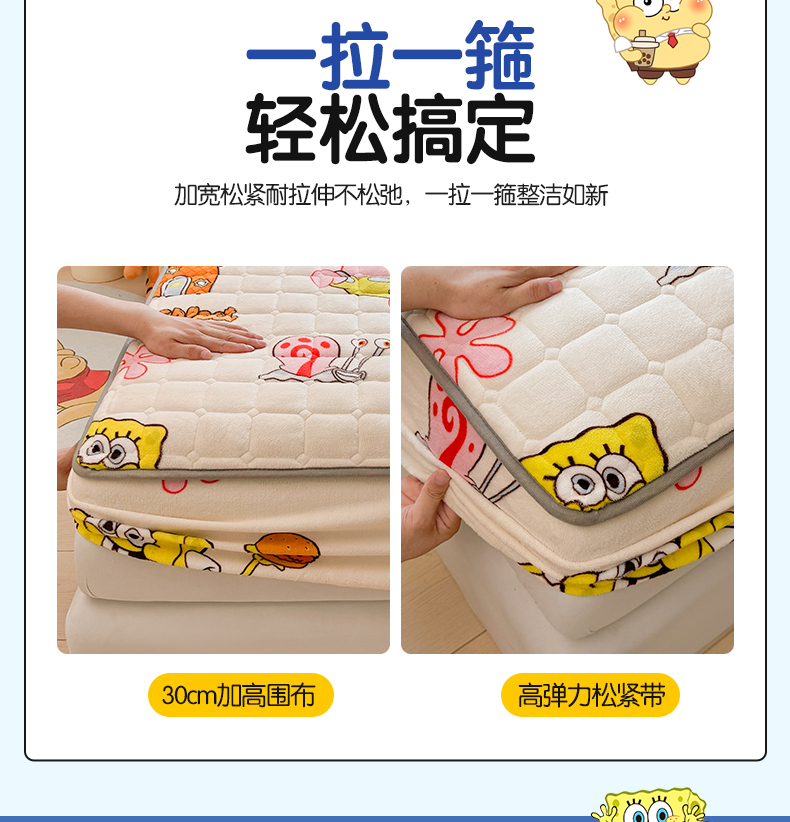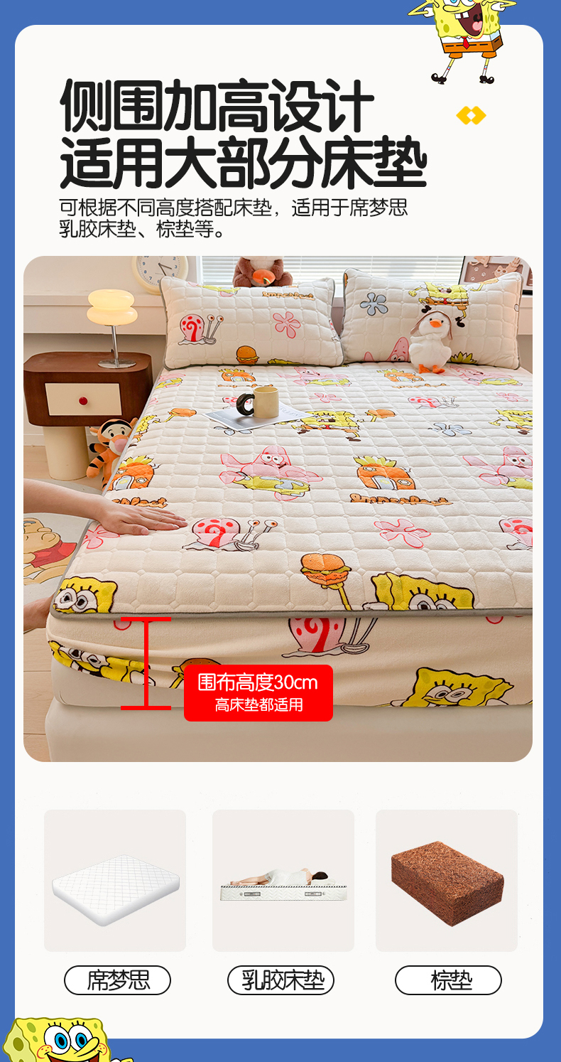 商品名称:迪梦思 2024新款正版授权卡通牛奶绒床垫床护垫 学生床垫床笠 海绵乐园-床笠款