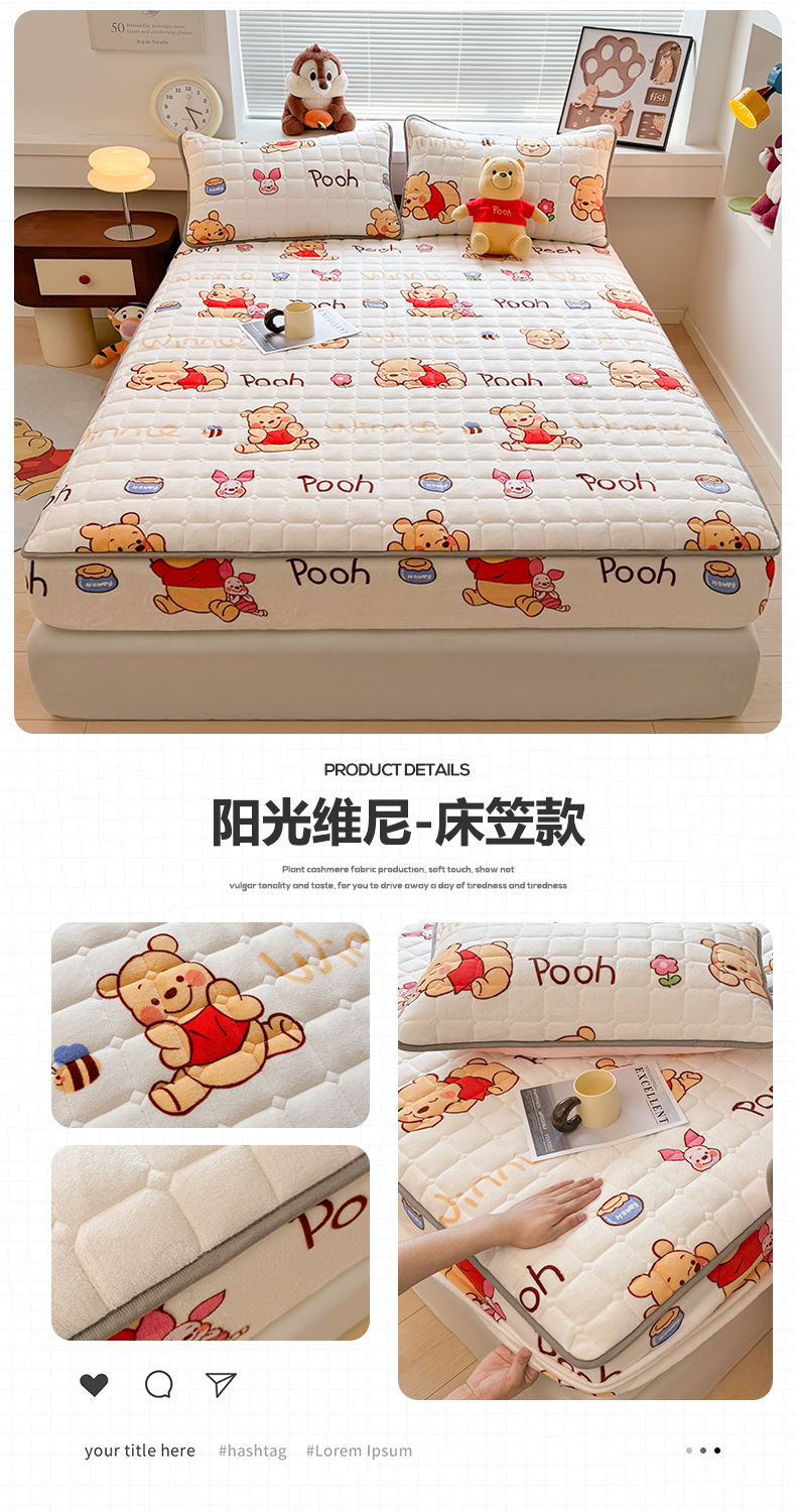 商品名称:迪梦思 2024新款正版授权卡通牛奶绒床垫床护垫 学生床垫床笠 阳光维尼-床笠款