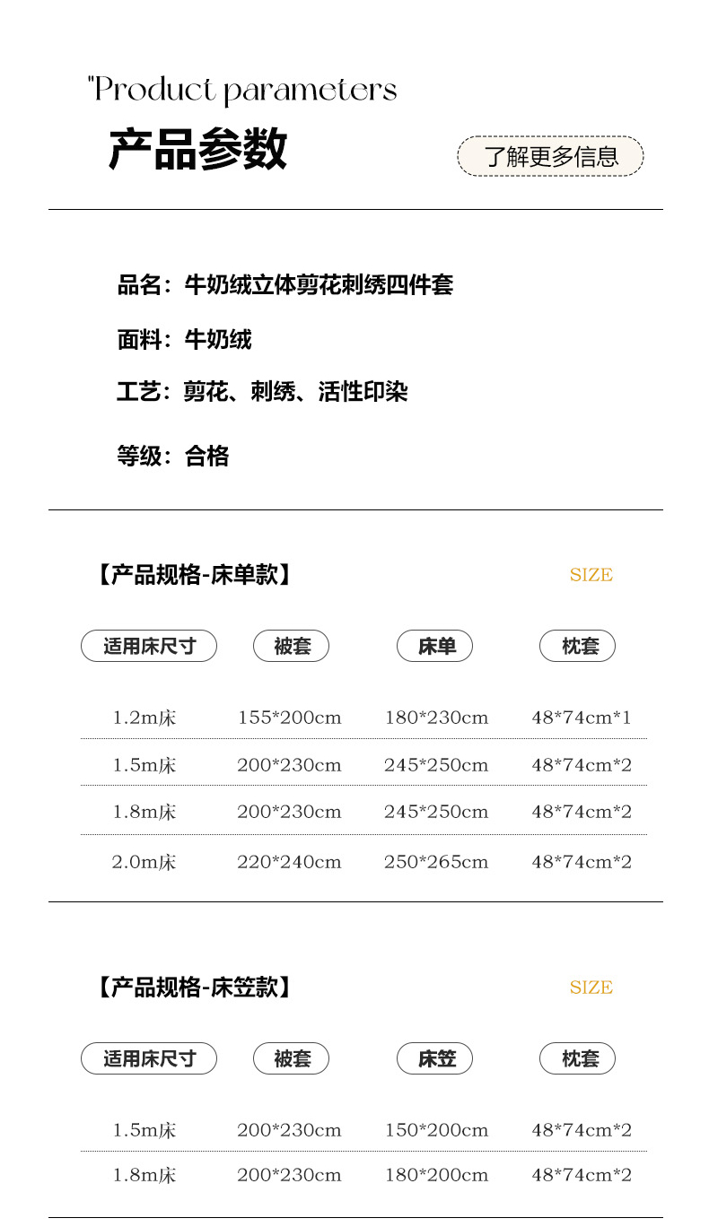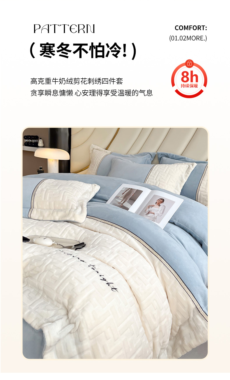 商品名称:(总)2024秋冬新款时尚宽边立体剪花刺绣加厚牛奶绒四件套-赫莲娜系列