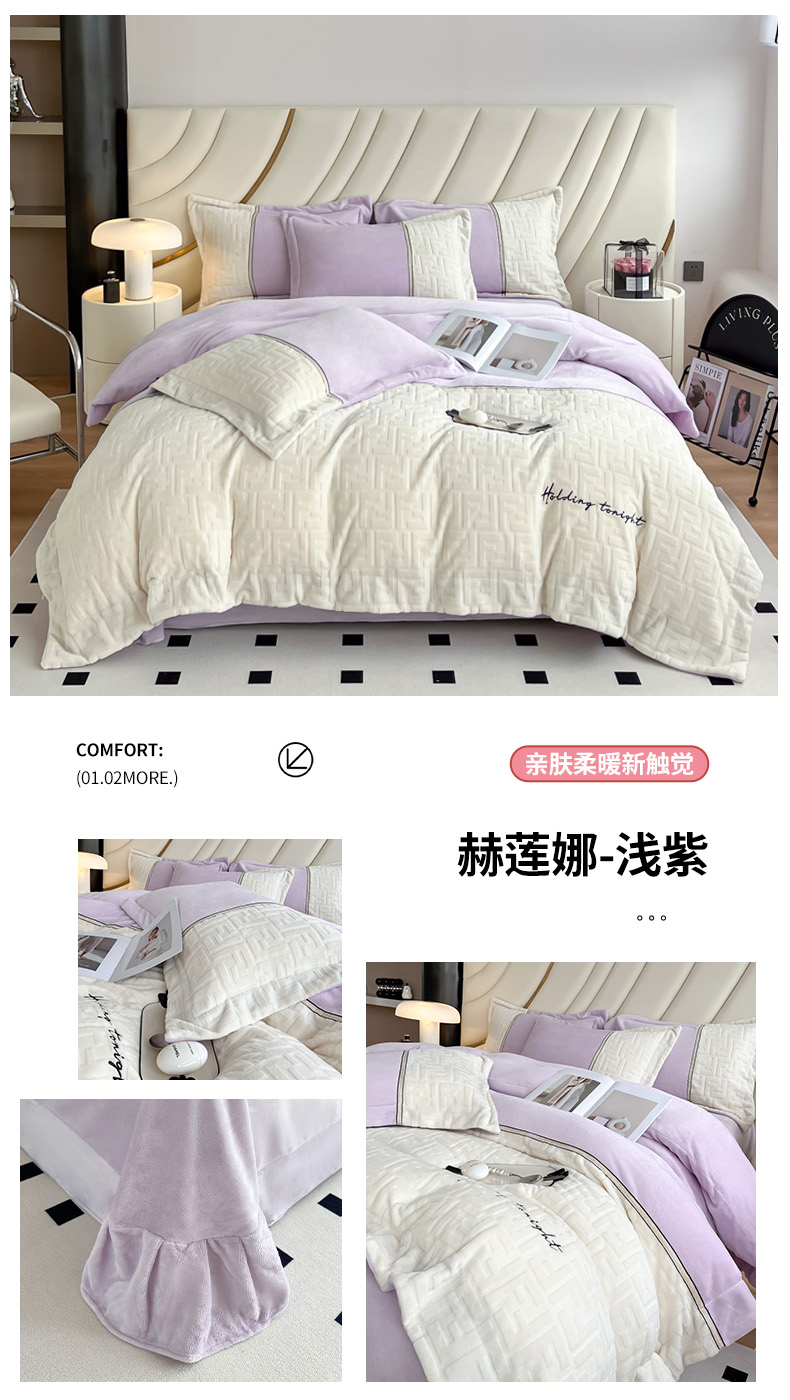 (总)2024秋冬新款时尚宽边立体剪花刺绣加厚牛奶绒四件套-赫莲娜系列