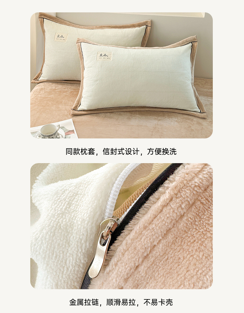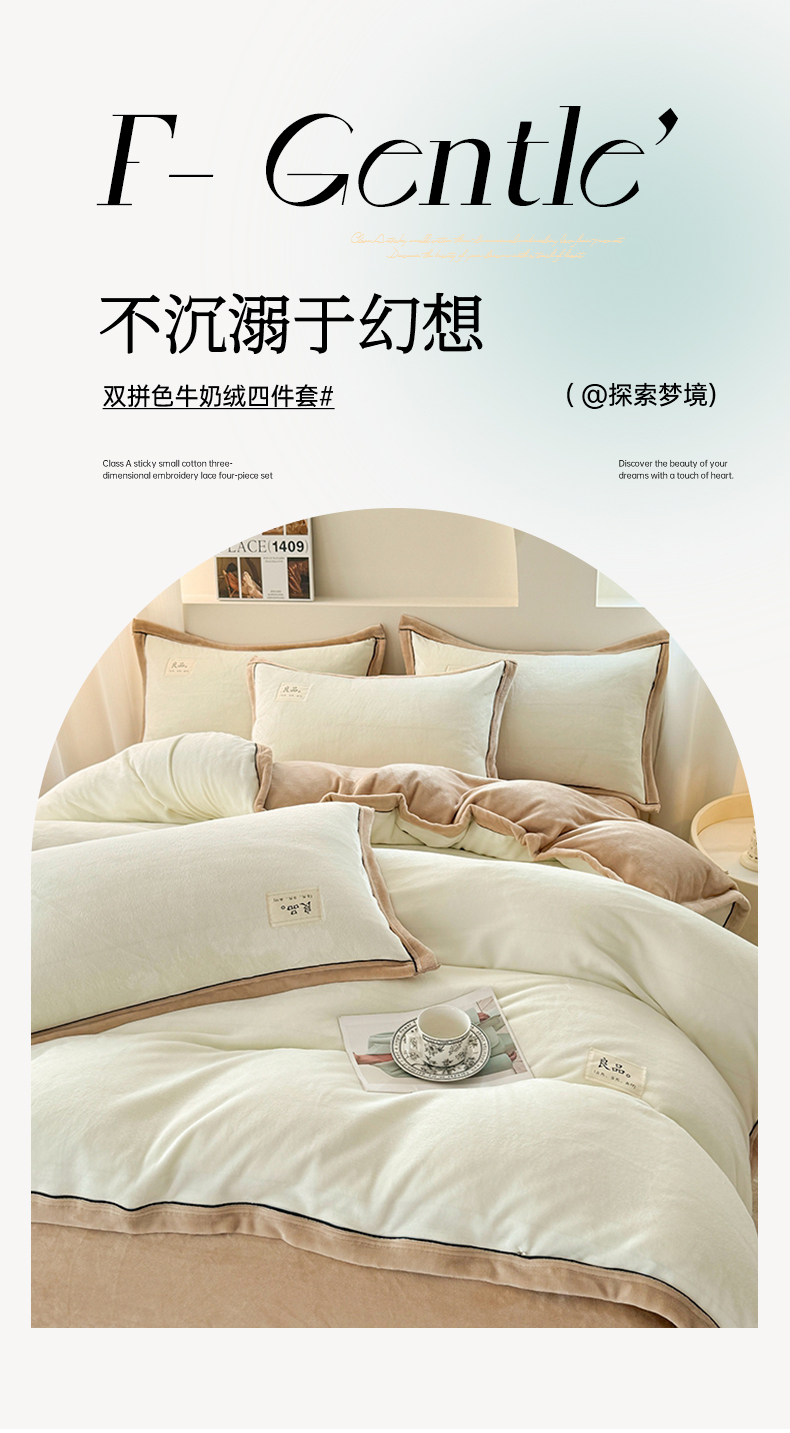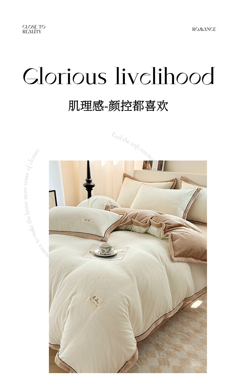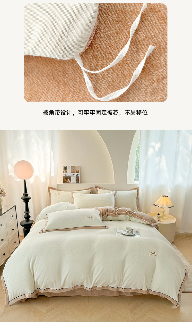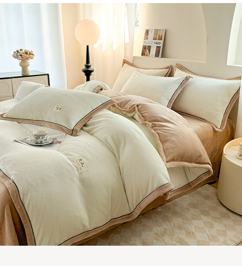 商品名称:喜梦缘 2025新款高克重牛奶绒双拼四件套 双拼色-米白+咖色
