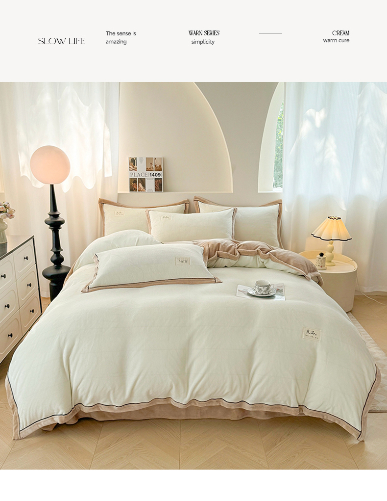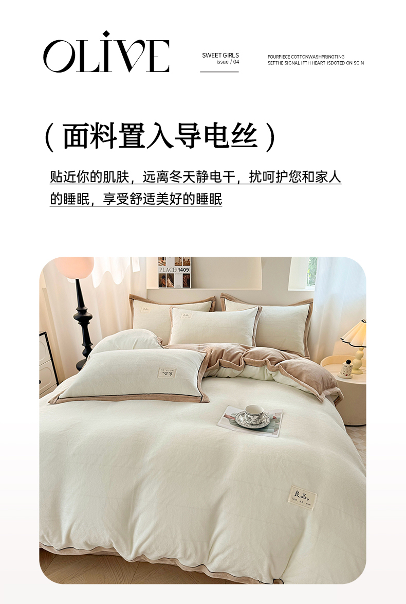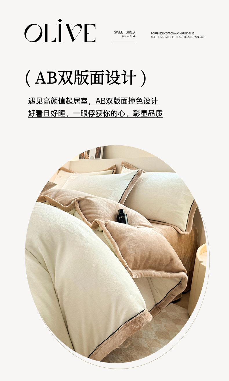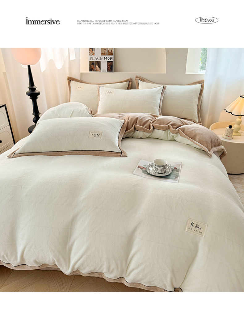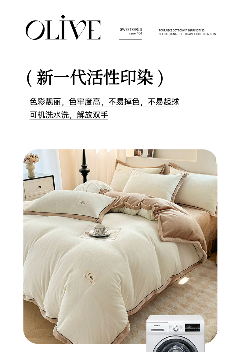 商品名称:喜梦缘 2025新款高克重牛奶绒双拼四件套 双拼色-米白+咖色