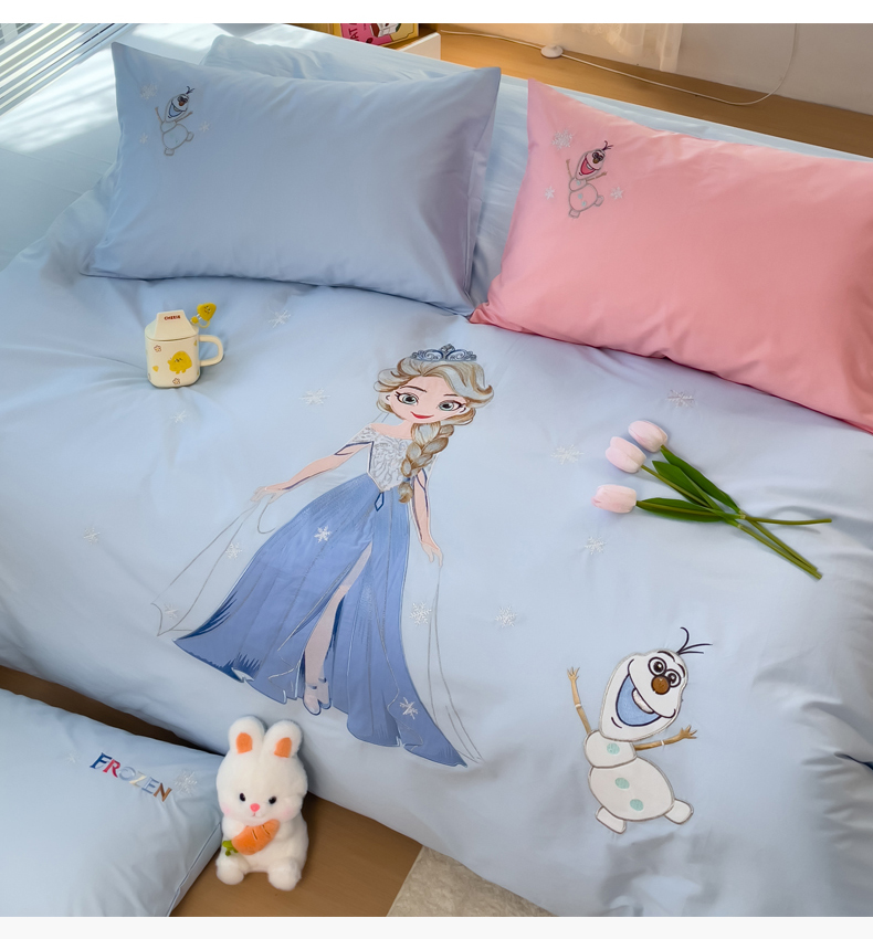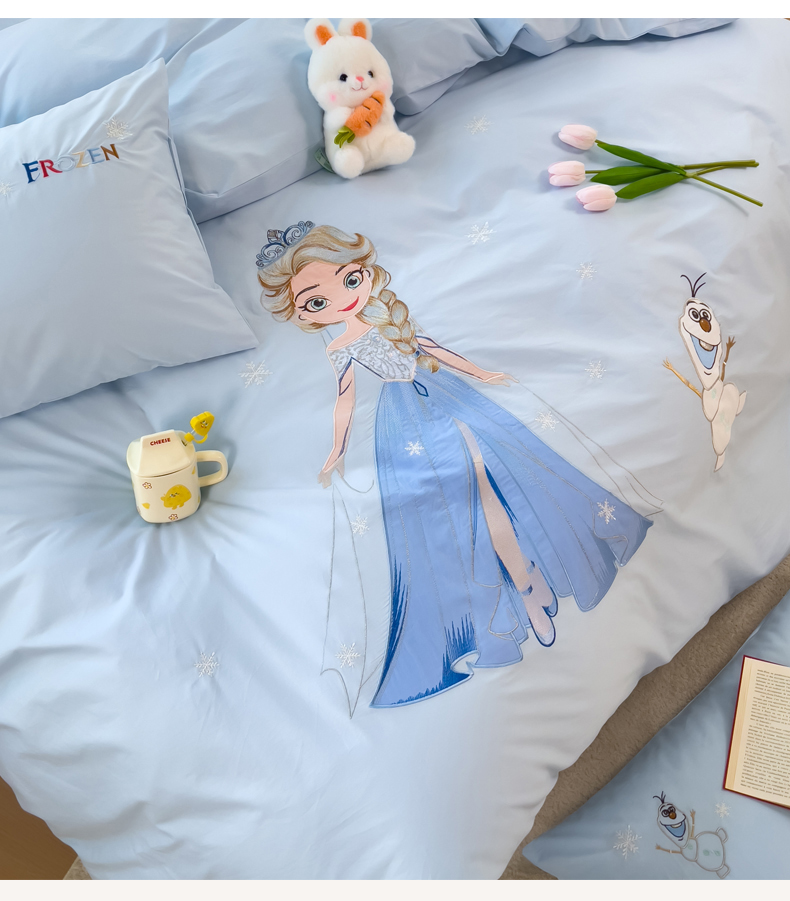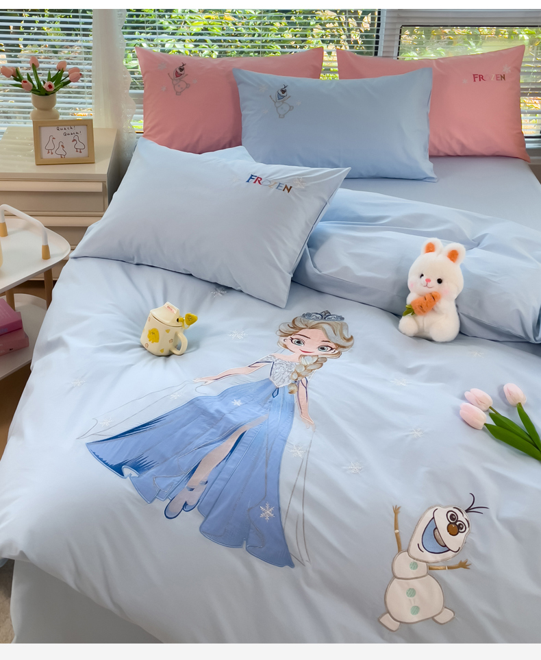 昊川家纺 2025新款A类全棉水洗棉高密毛巾绣四件套 艾莎-蓝