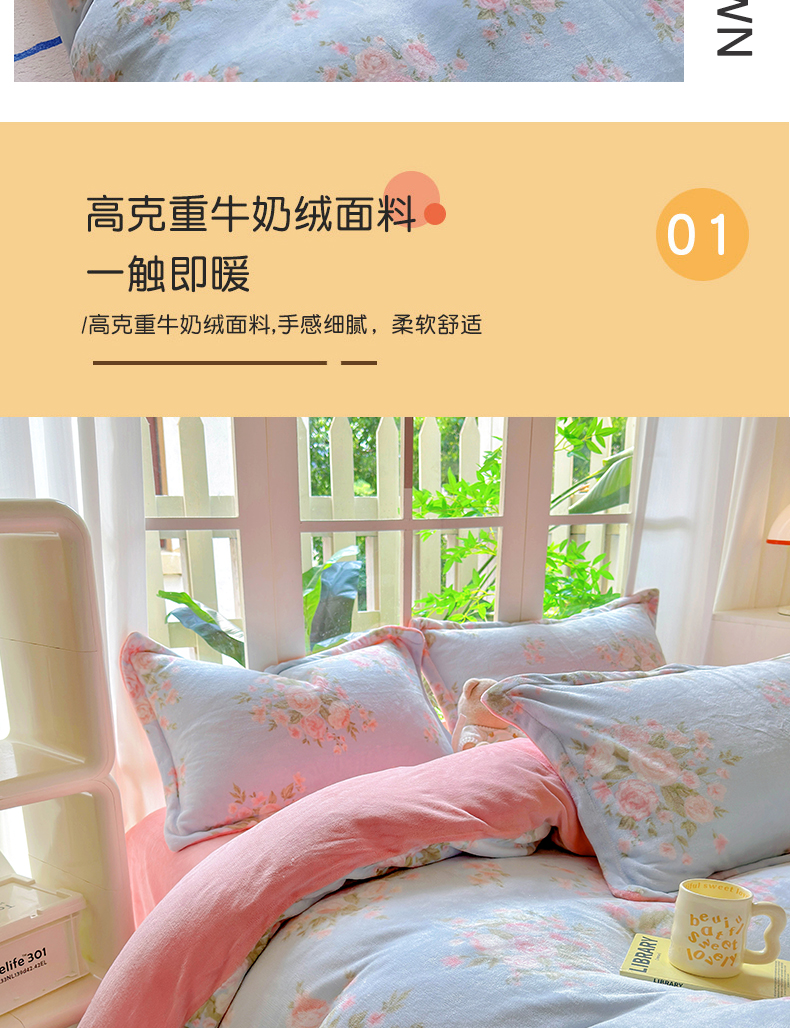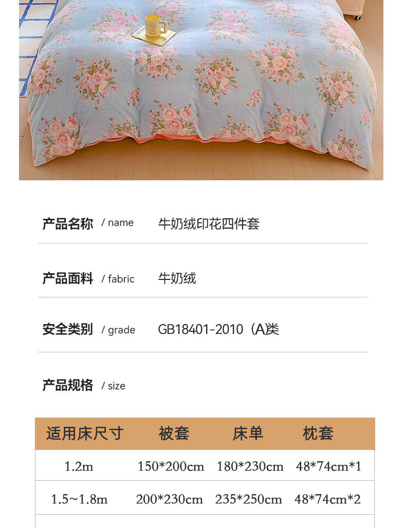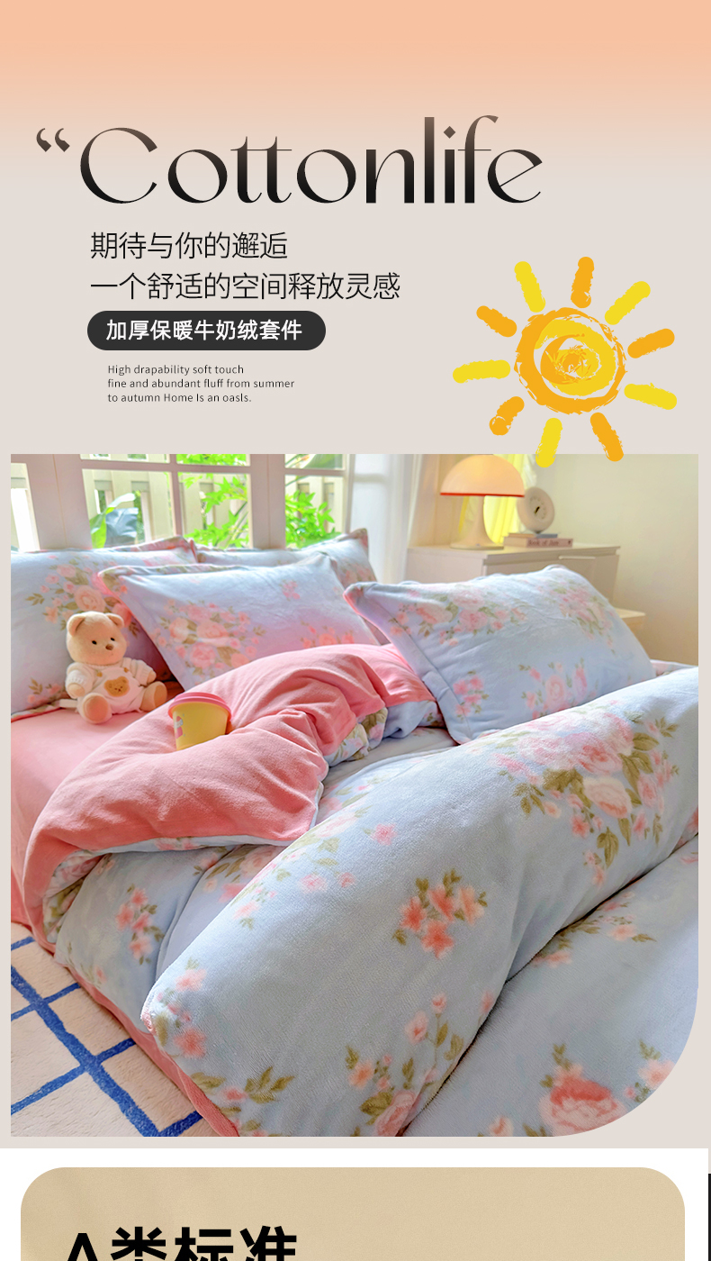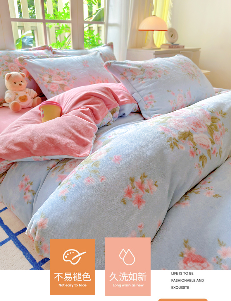 当前位置: 91家纺网 > 商品网购 > 床品套件 > 四件套 > 牛奶绒四件套 > 百寐 2024新款加厚A类牛奶绒印花卡通床单床笠四件套三件套 莫奈庄园