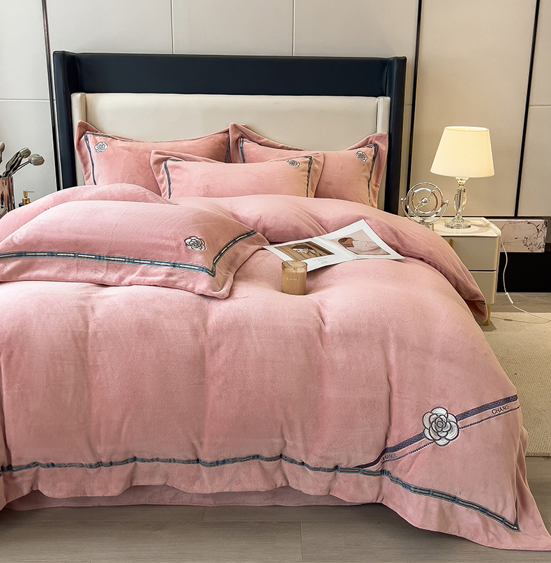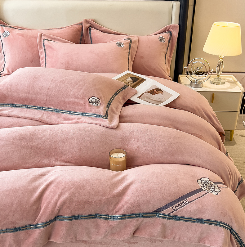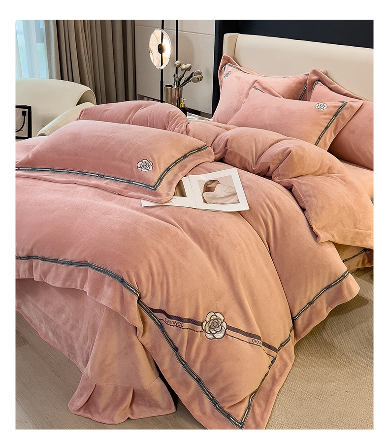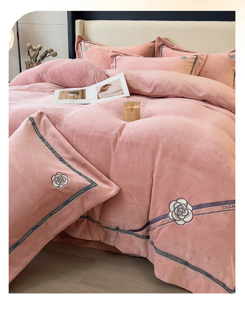 (总)金绣美居 2025新款加厚牛奶绒韩版床盖款绣花手工花保暖四件套-花弄影,花弄影-牛奶粉,花弄影-浅湖蓝,花弄影-新媚紫,花弄影-奶昔色
