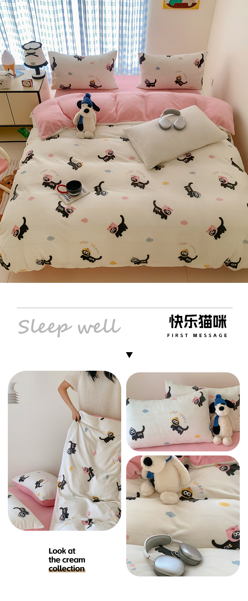 美乐迪家纺 2024新款高品质牛奶绒四件套 快乐猫咪