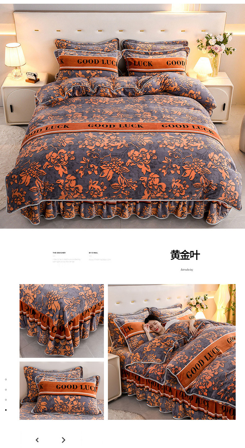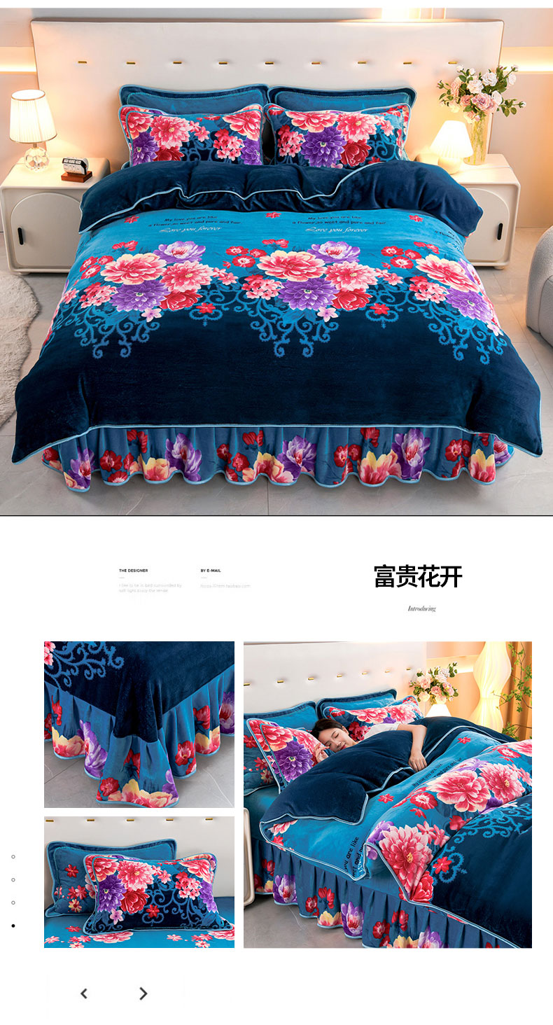 静缘分 2025新款230克特厚8.5斤牛奶绒金貂绒床裙款保暖四件套-春色满园,春色满园