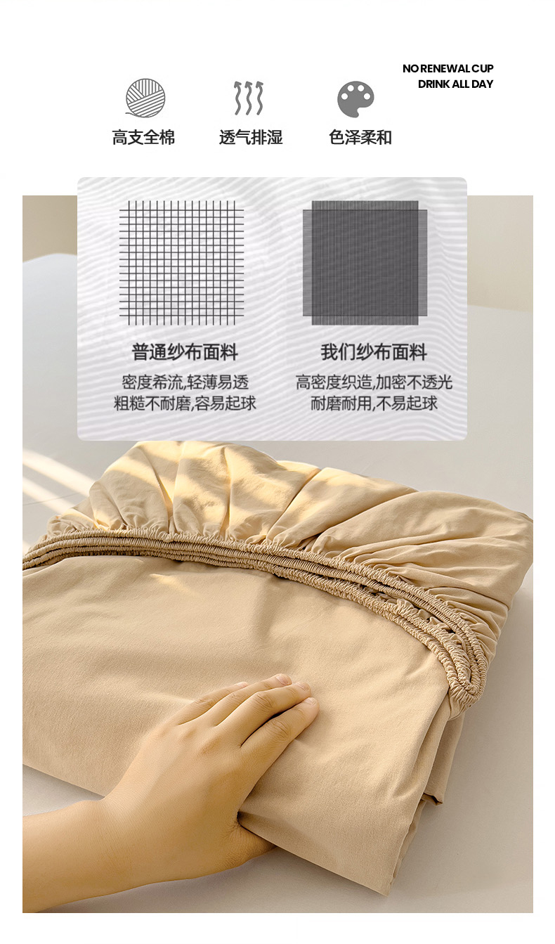 卡普二店 2024新款A类纯棉水洗棉单床笠浅咖