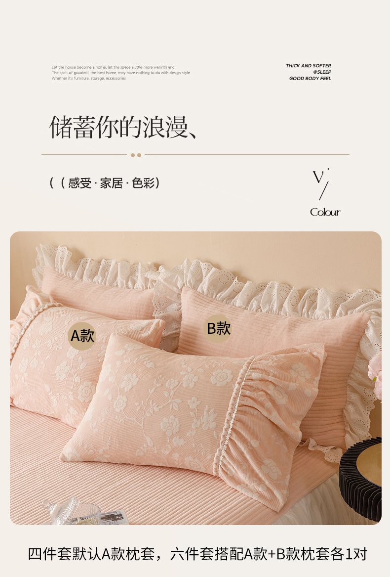 (总)胜权家纺 2024新款小香风牛奶绒夹棉床盖四件套-芭莎系列,芭莎-粉,芭莎-绿,芭莎-紫,芭莎-米