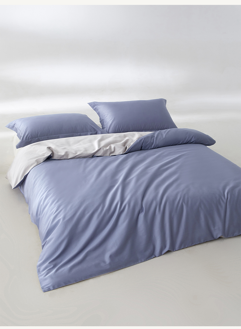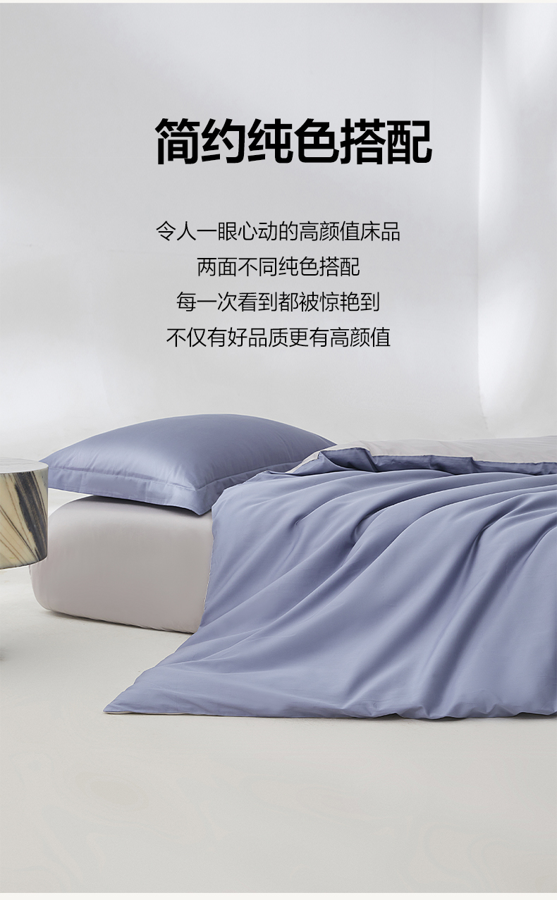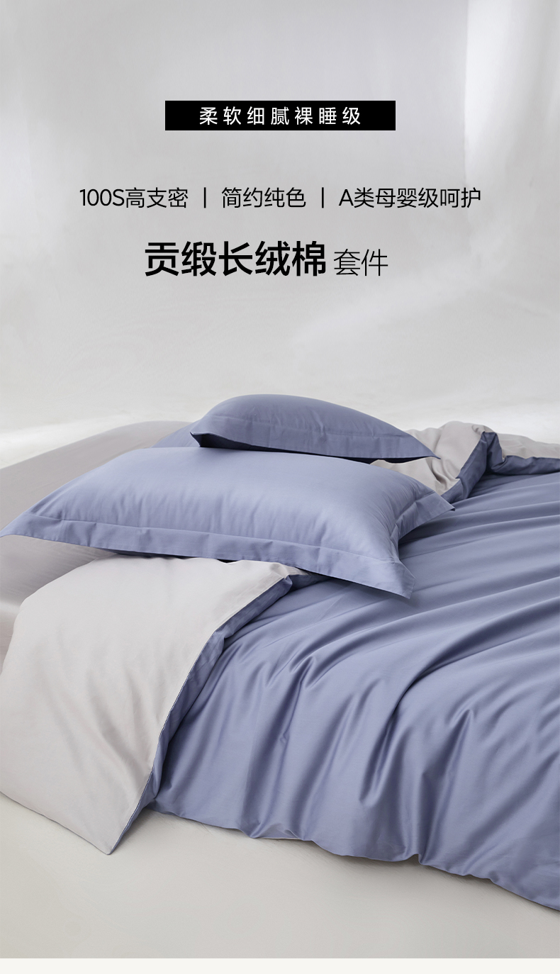 当前位置: 91家纺网 > 商品网购 > 床品套件 > 四件套 > 长绒棉四件套 > 轩和家居 2024新款简约纯色50s长绒棉贡缎四件套 海茵蓝+雅士灰