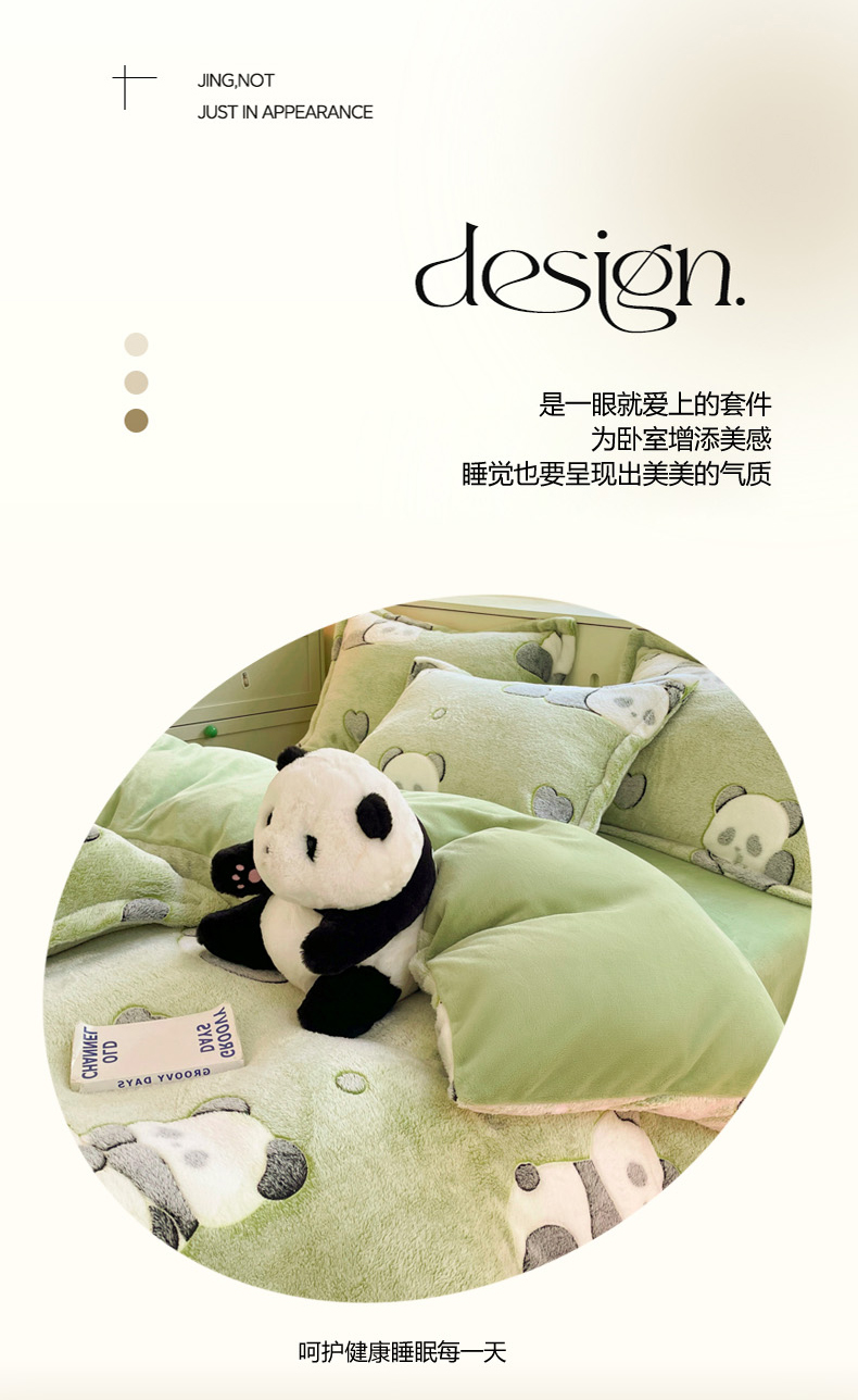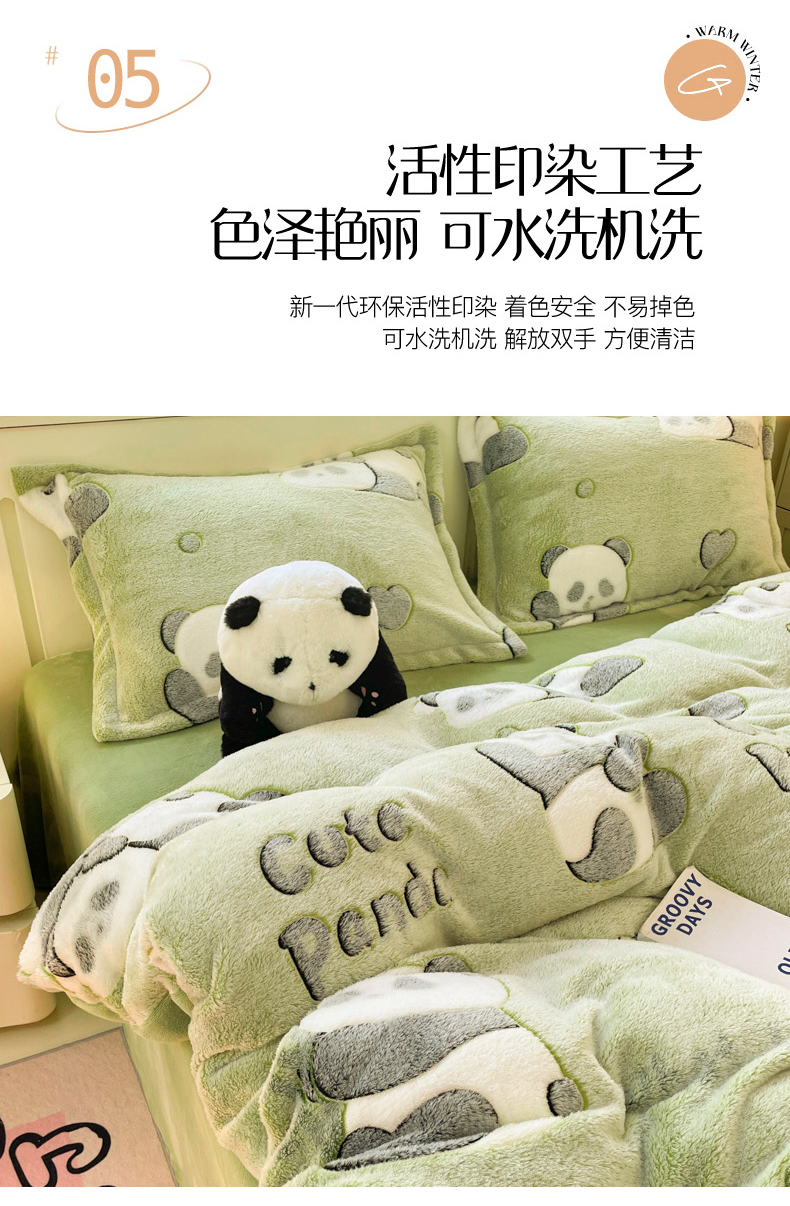 当前位置: 91家纺网 > 商品网购 > 床品套件 > 四件套 > 其它四件套 > 沐慕 2024新款卡通印花雪花绒四件套加厚牛奶绒四件套 熊猫伙伴