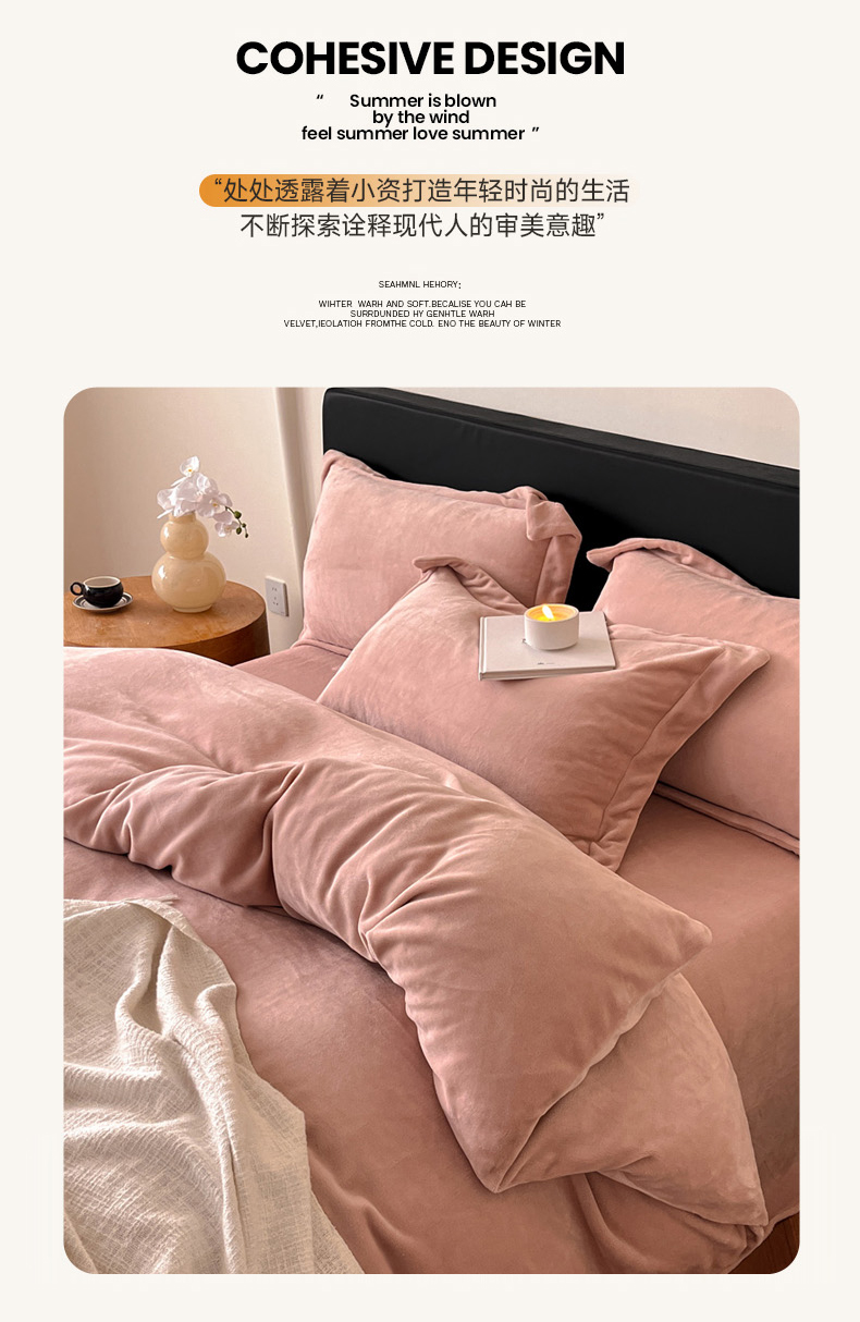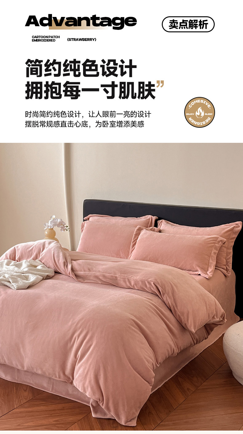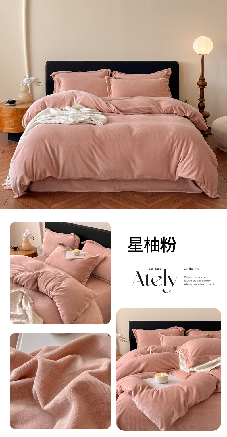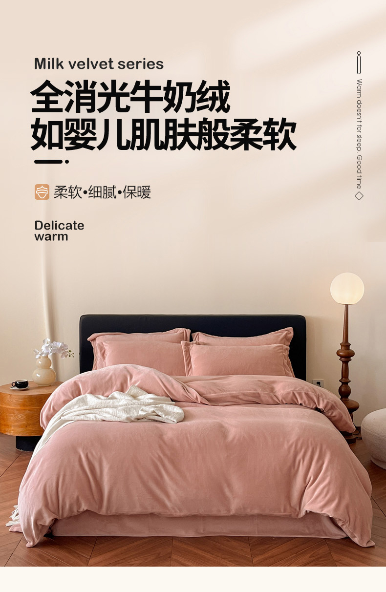当前位置: 91家纺网 > 商品网购 > 床品套件 > 四件套 > 牛奶绒四件套 > 万盛家纺 2025新款全消光加厚230克牛奶绒拼色四件套 星柚粉
