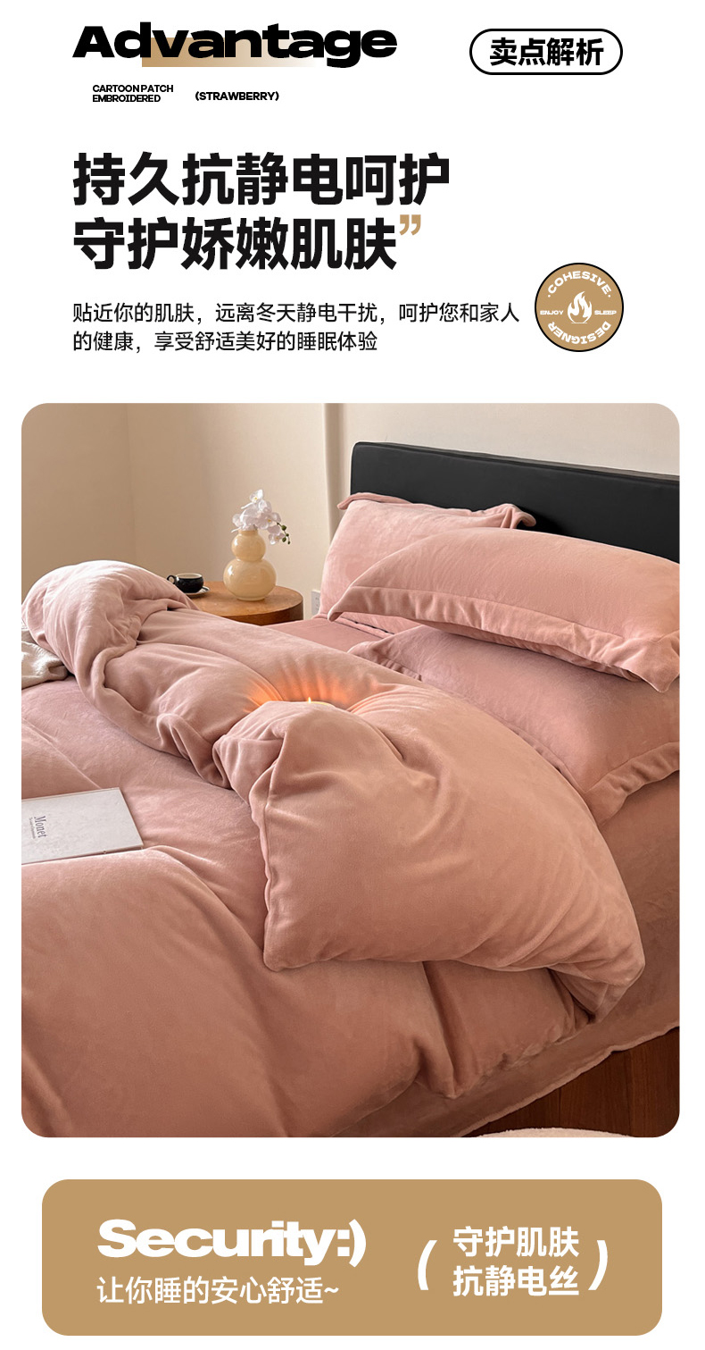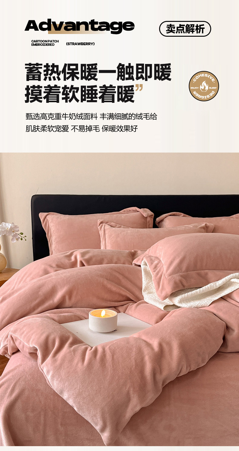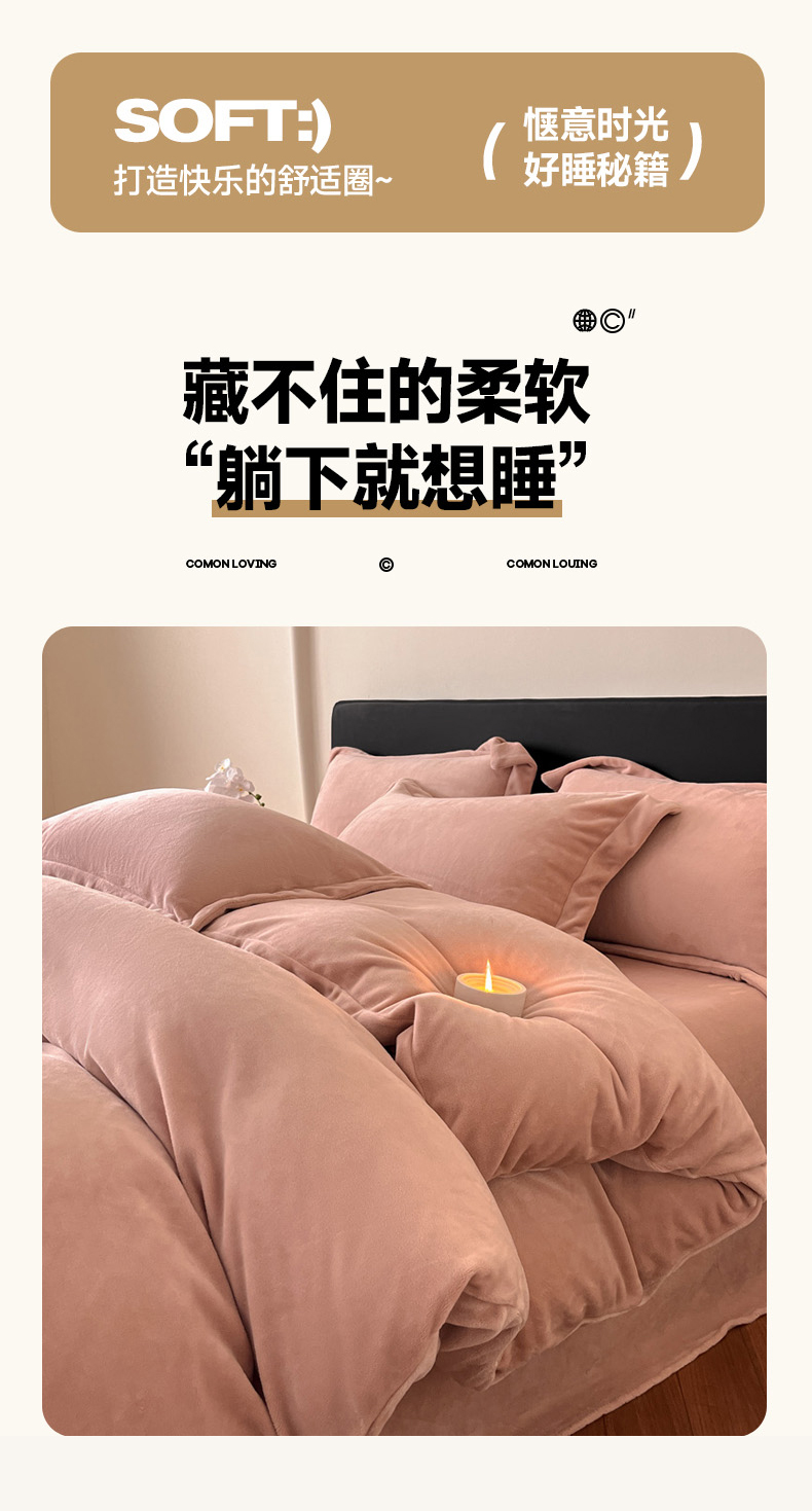当前位置: 91家纺网 > 商品网购 > 床品套件 > 四件套 > 牛奶绒四件套 > 万盛家纺 2025新款全消光加厚230克牛奶绒拼色四件套 星柚粉