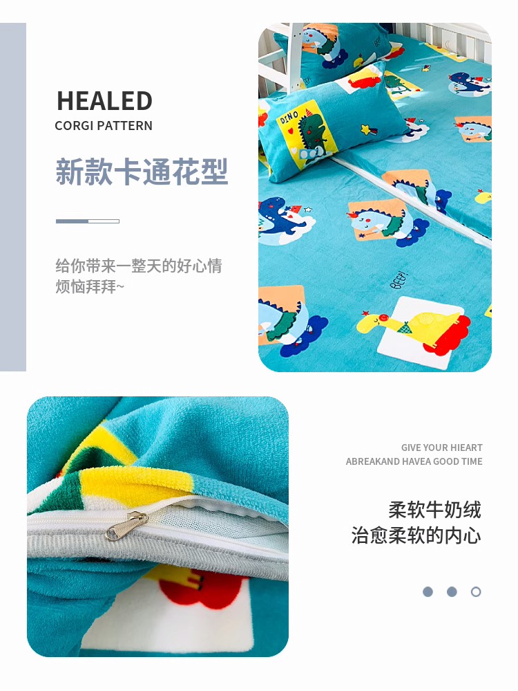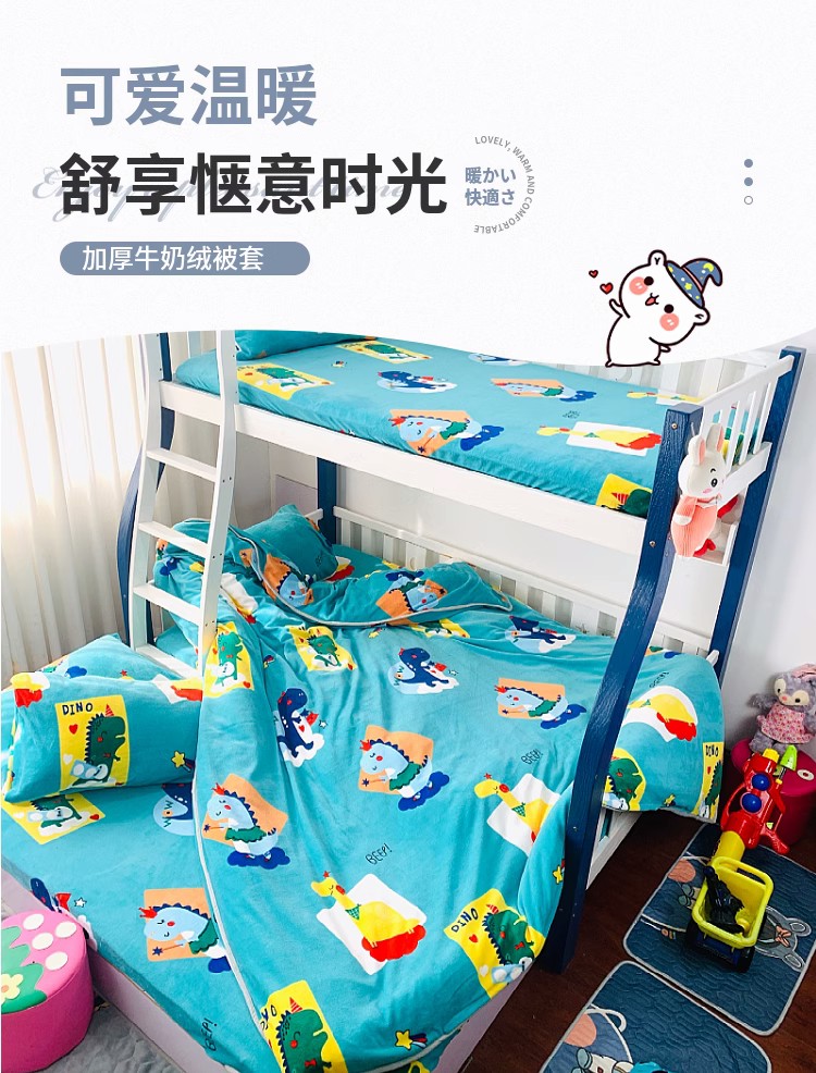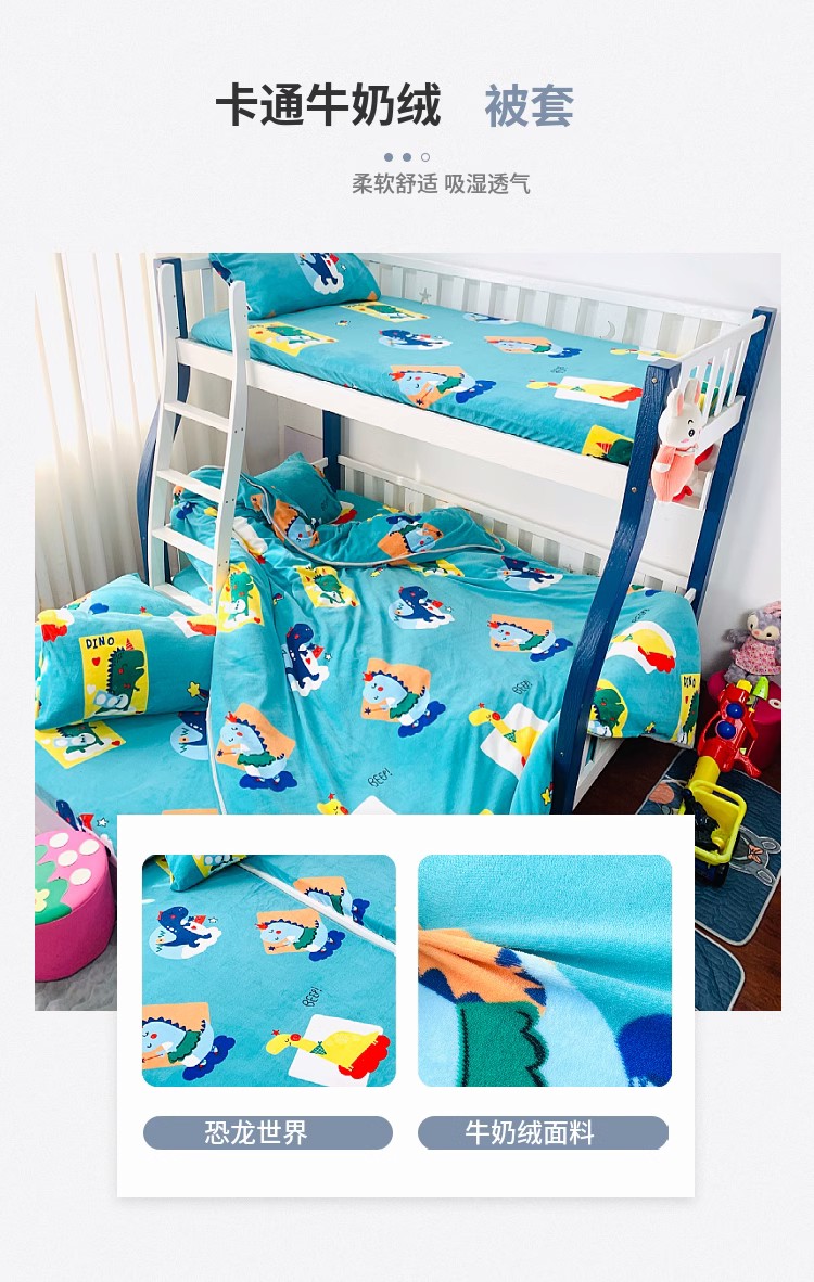 商品名称:小虾米 2024新款加厚上下床牛奶绒单被套 恐龙世界