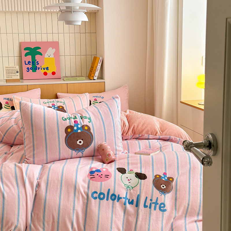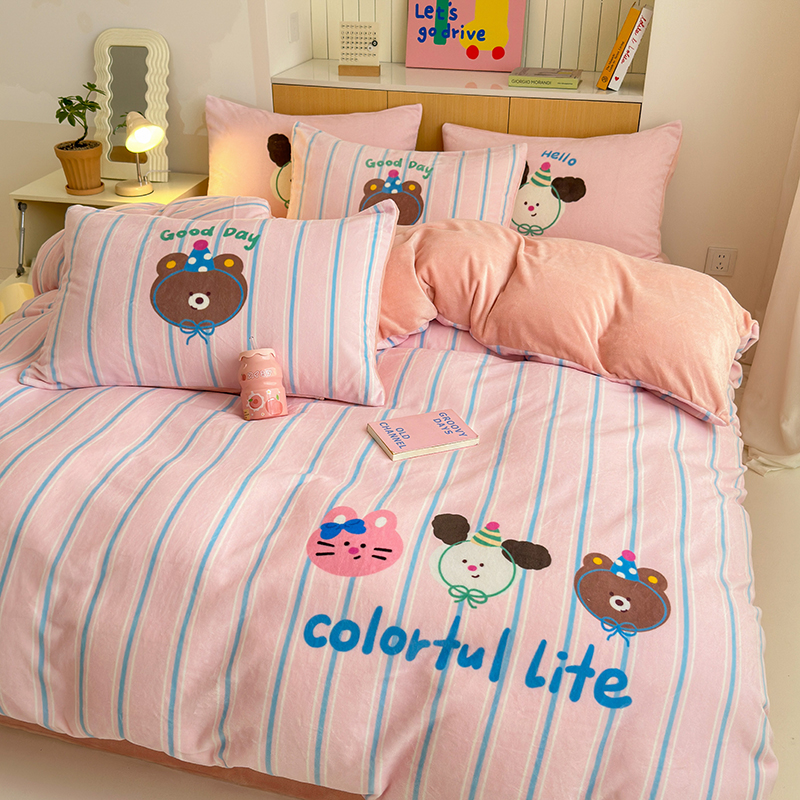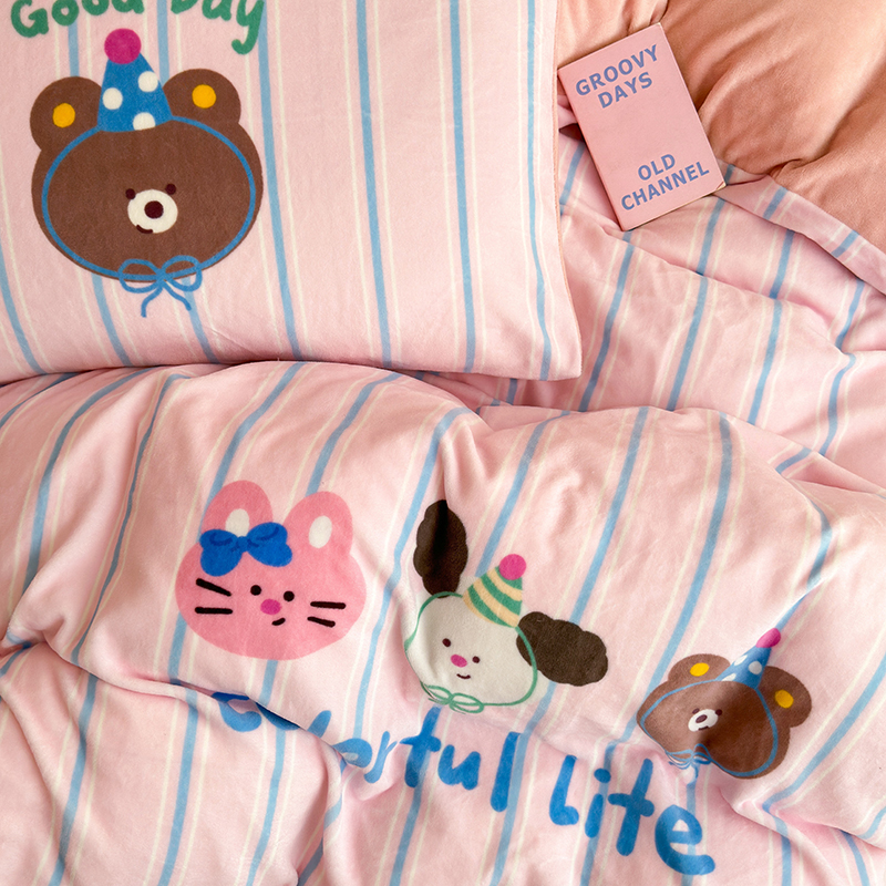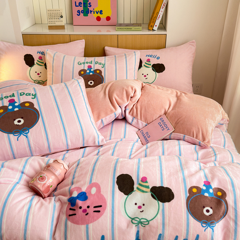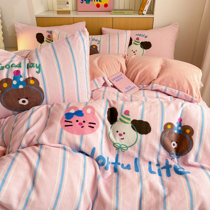 2024新款大版卡通双面高克重牛奶绒床单款四件套 好朋友