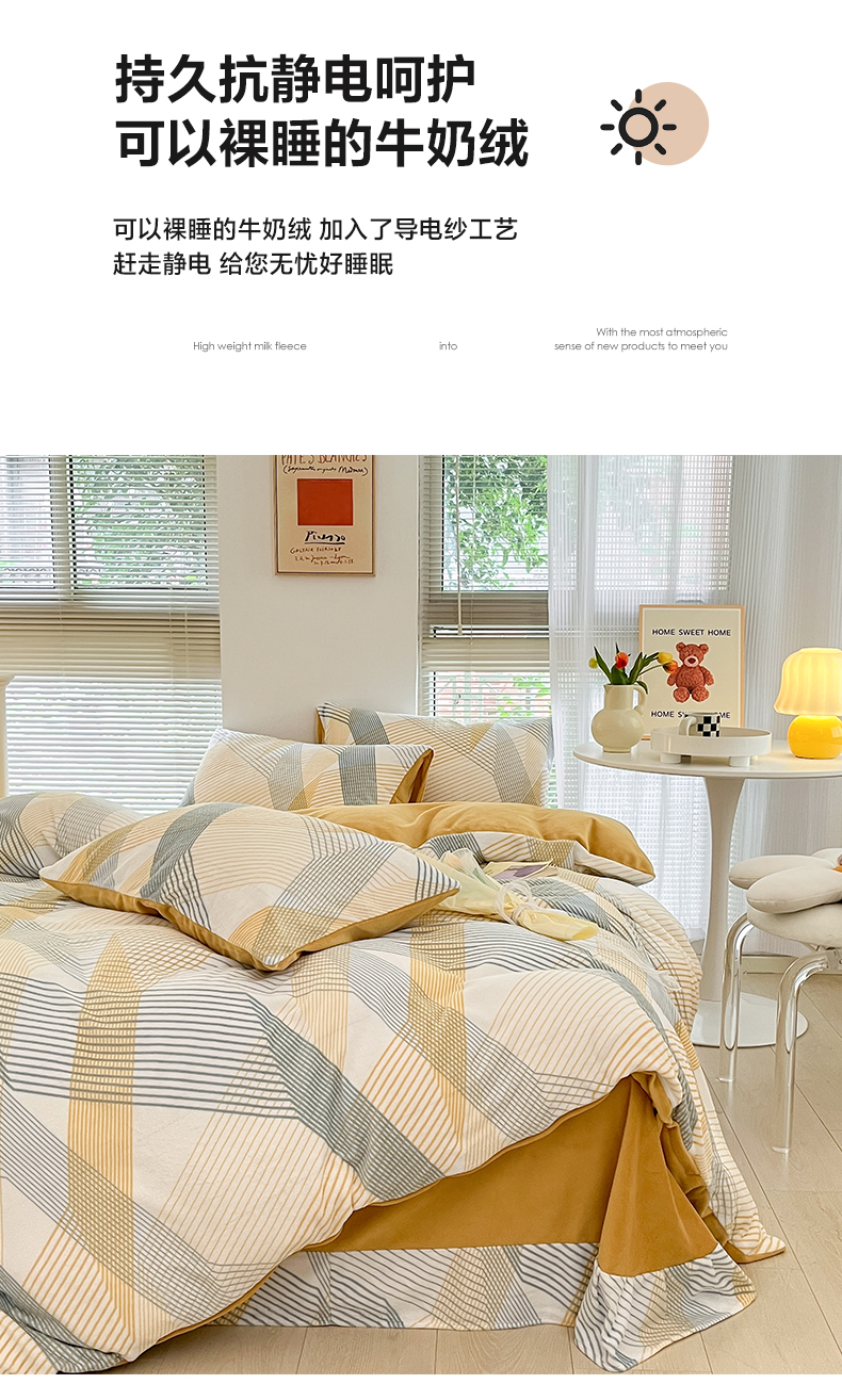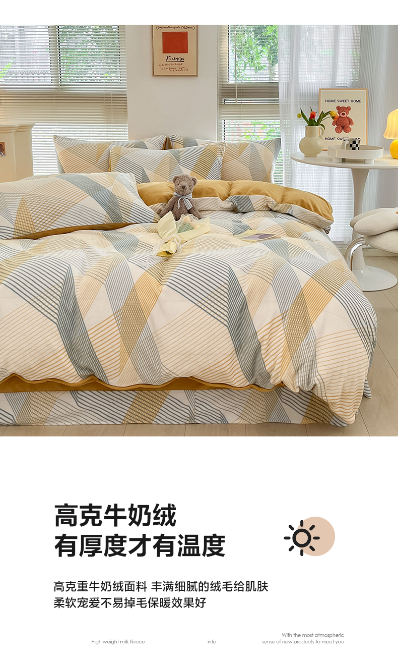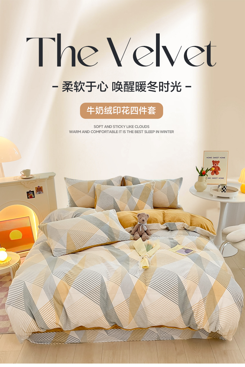 帅露家纺 2024新款高克重牛奶绒印花四件套 极简生活