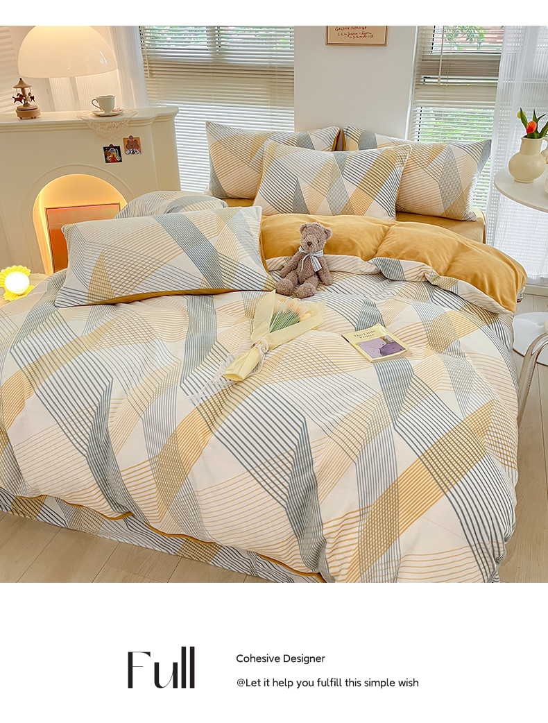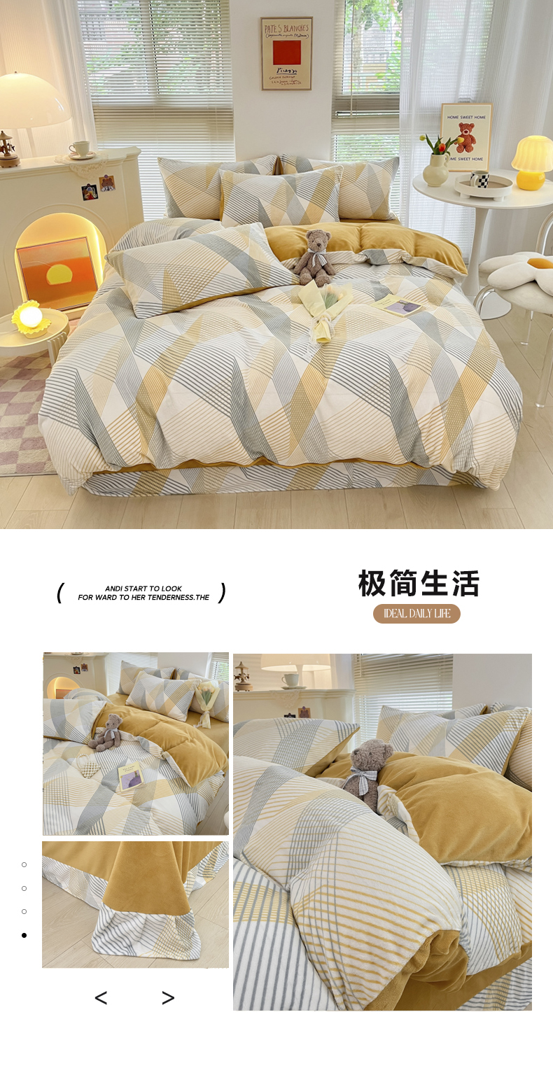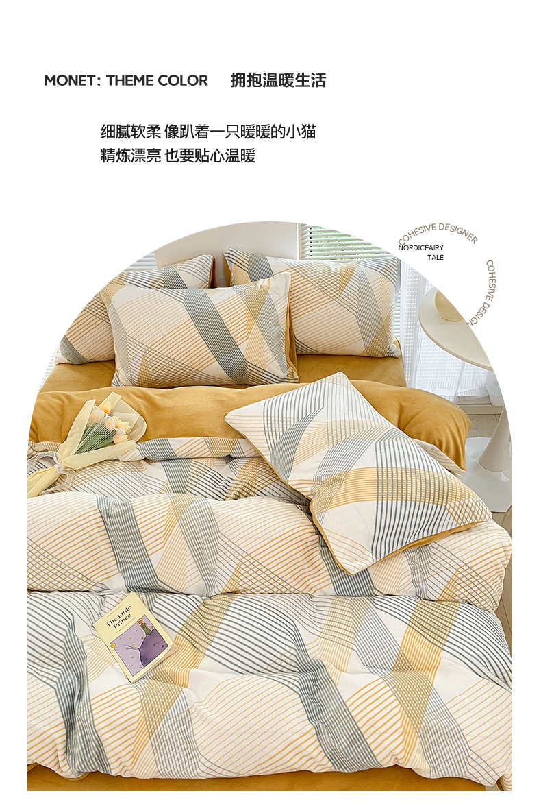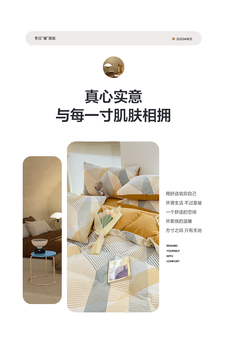 帅露家纺 2024新款高克重牛奶绒印花四件套 极简生活