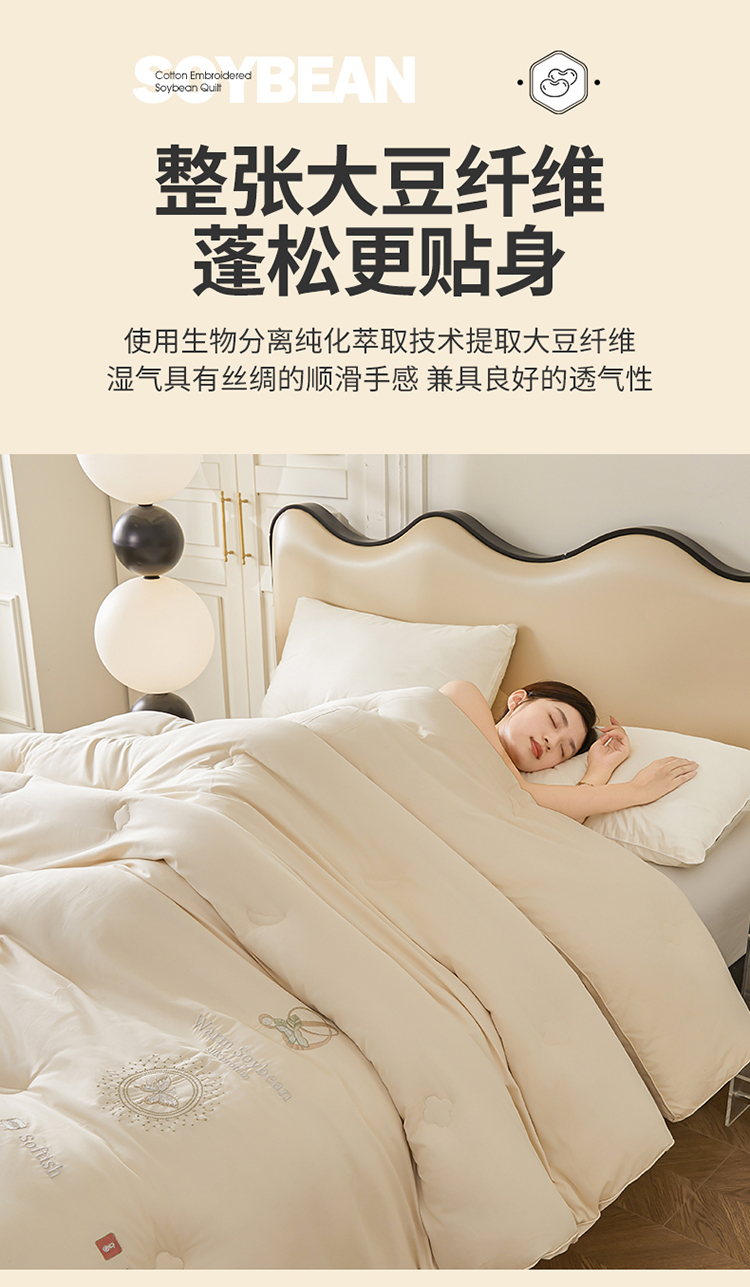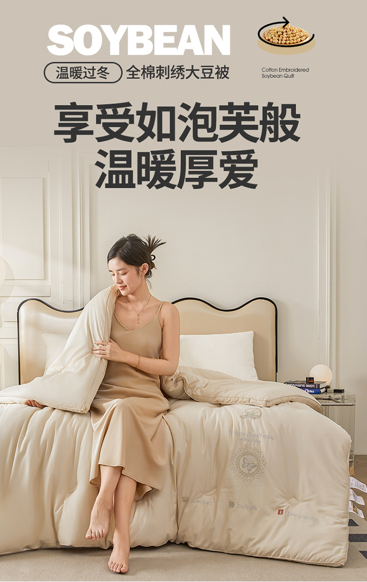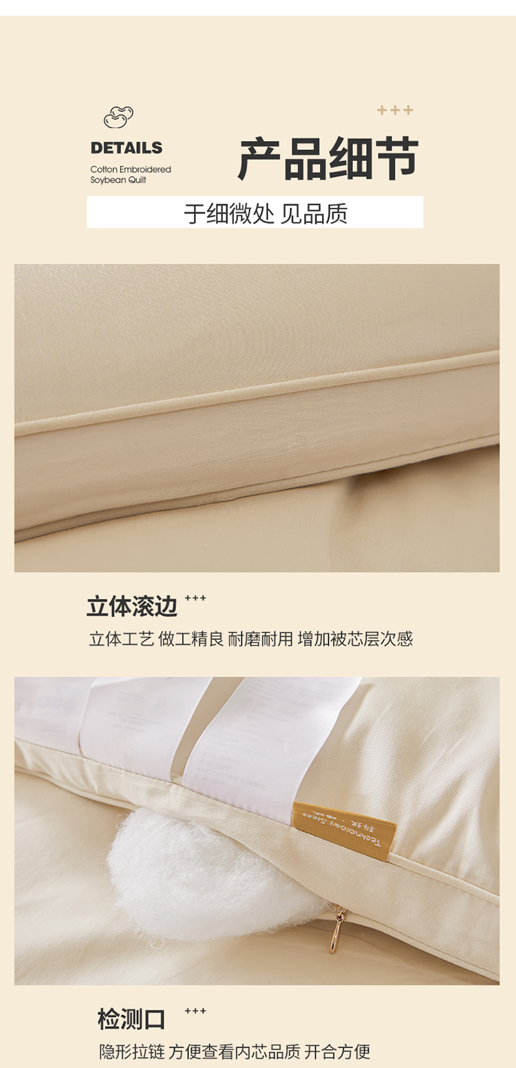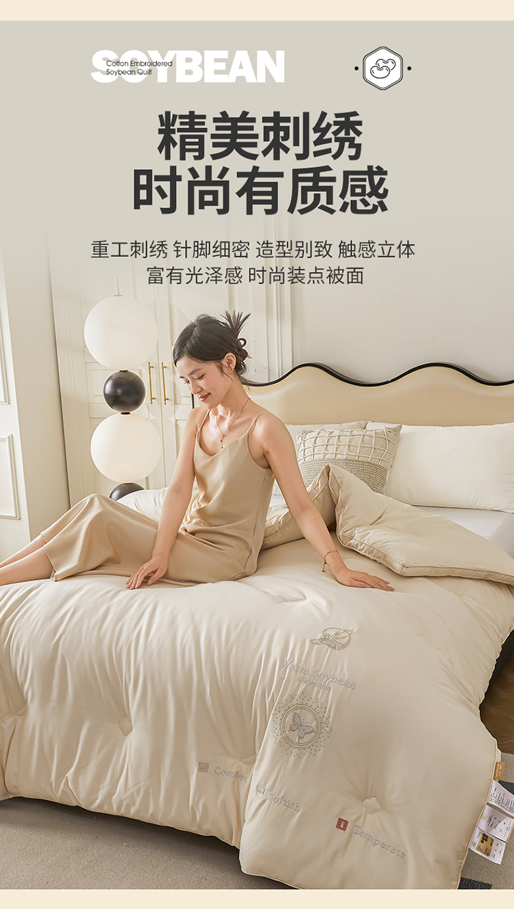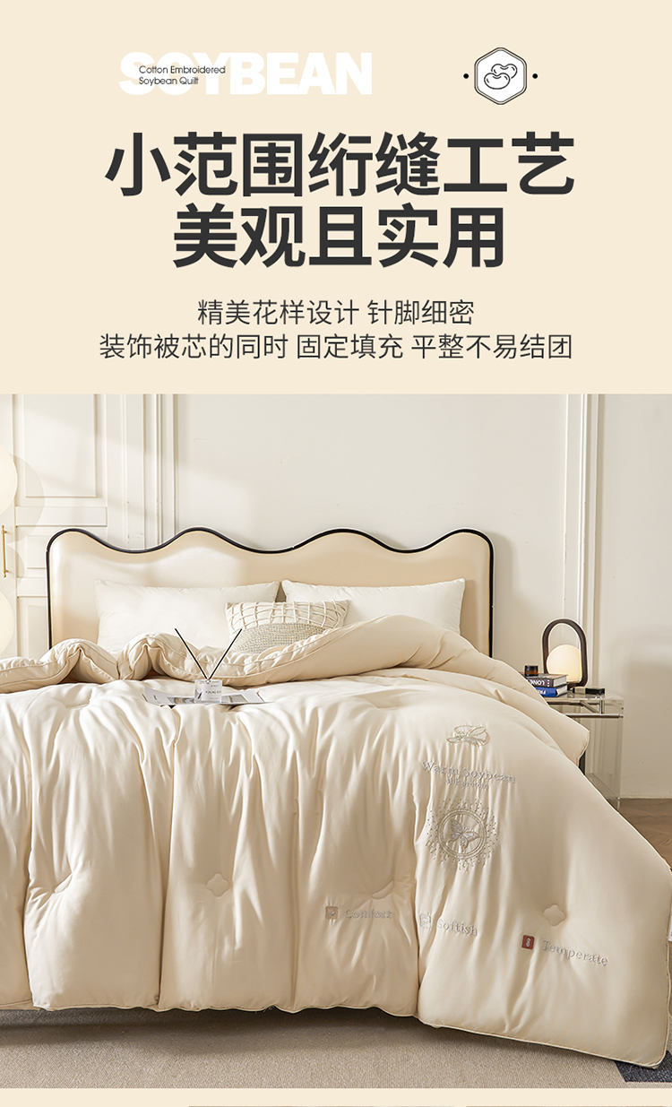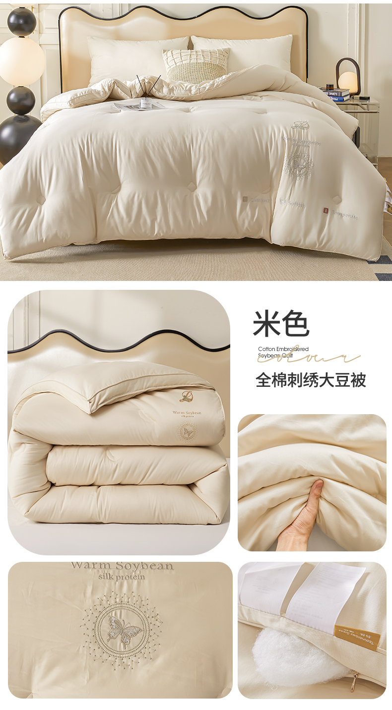 商品名称:2024新款60s全棉绣花冬被全棉冬被立体边被子被芯四季被春秋被夏被大豆被 米色