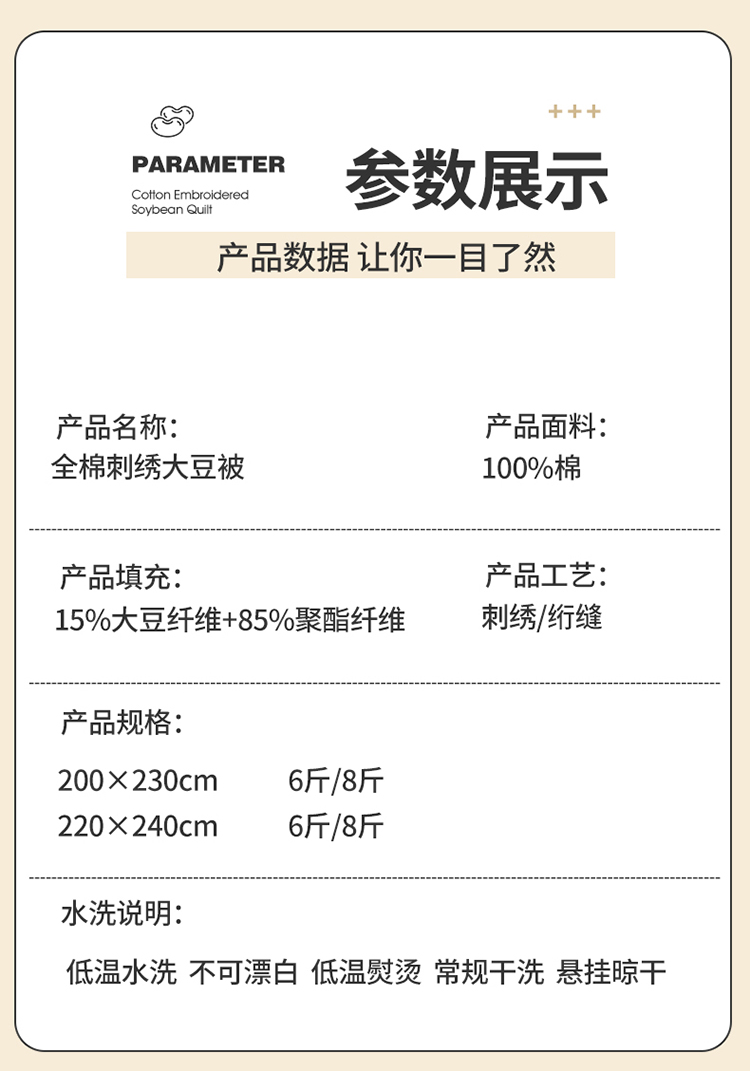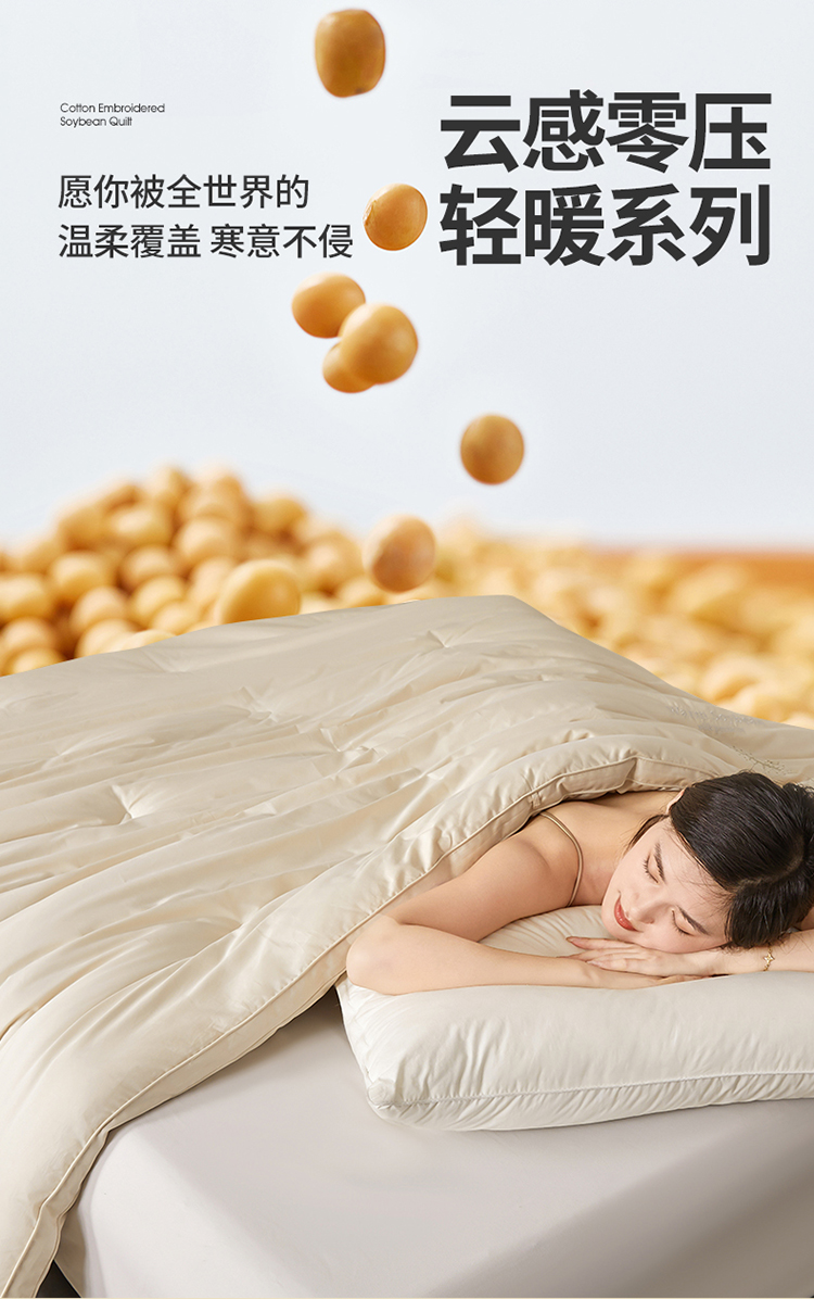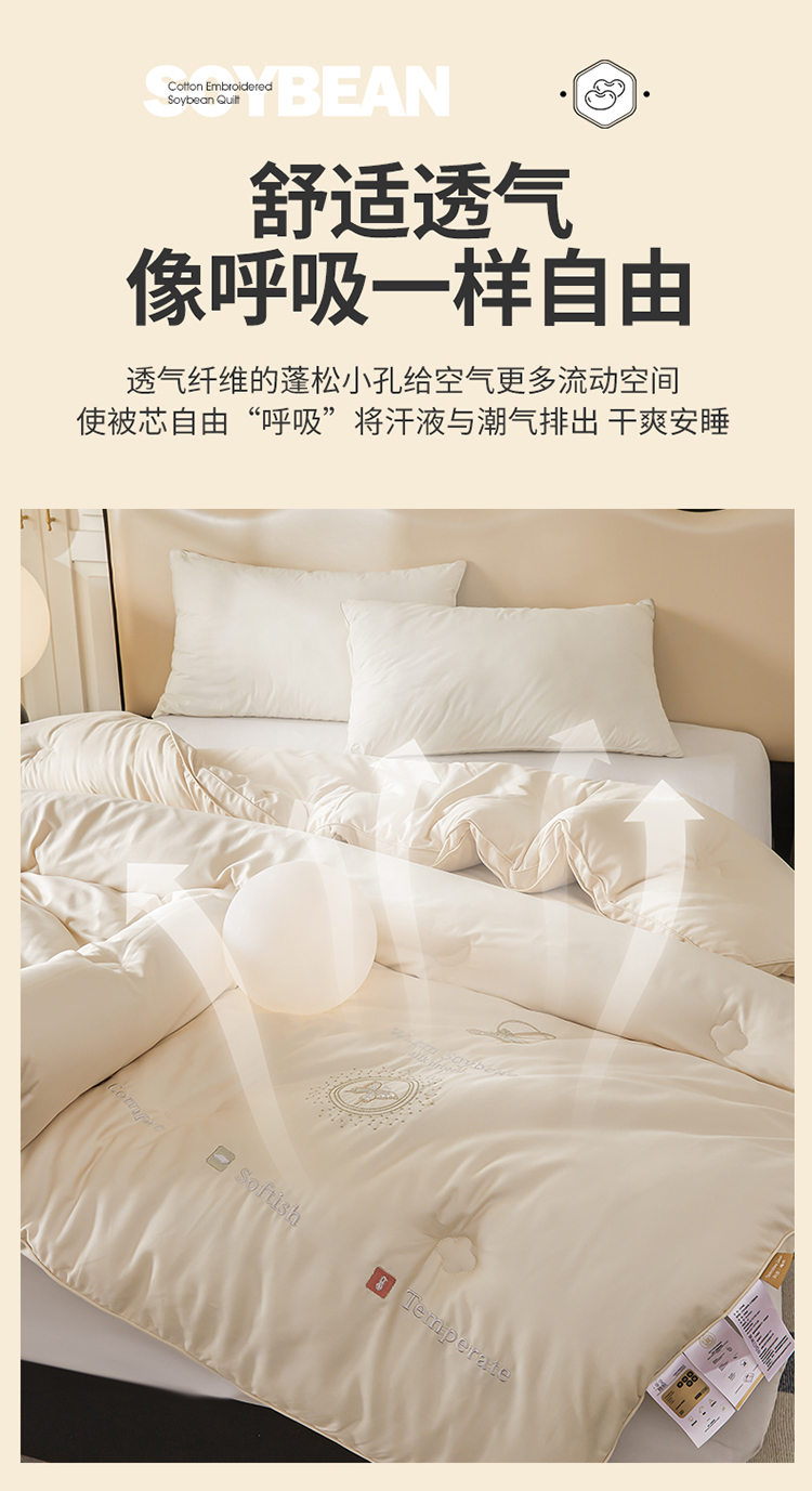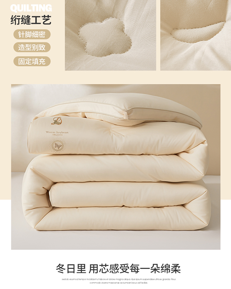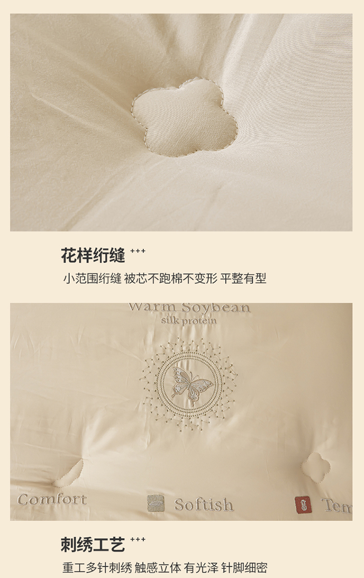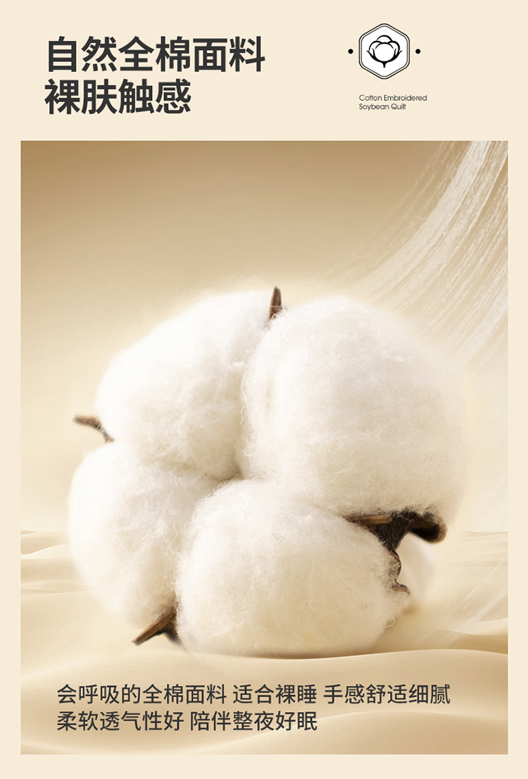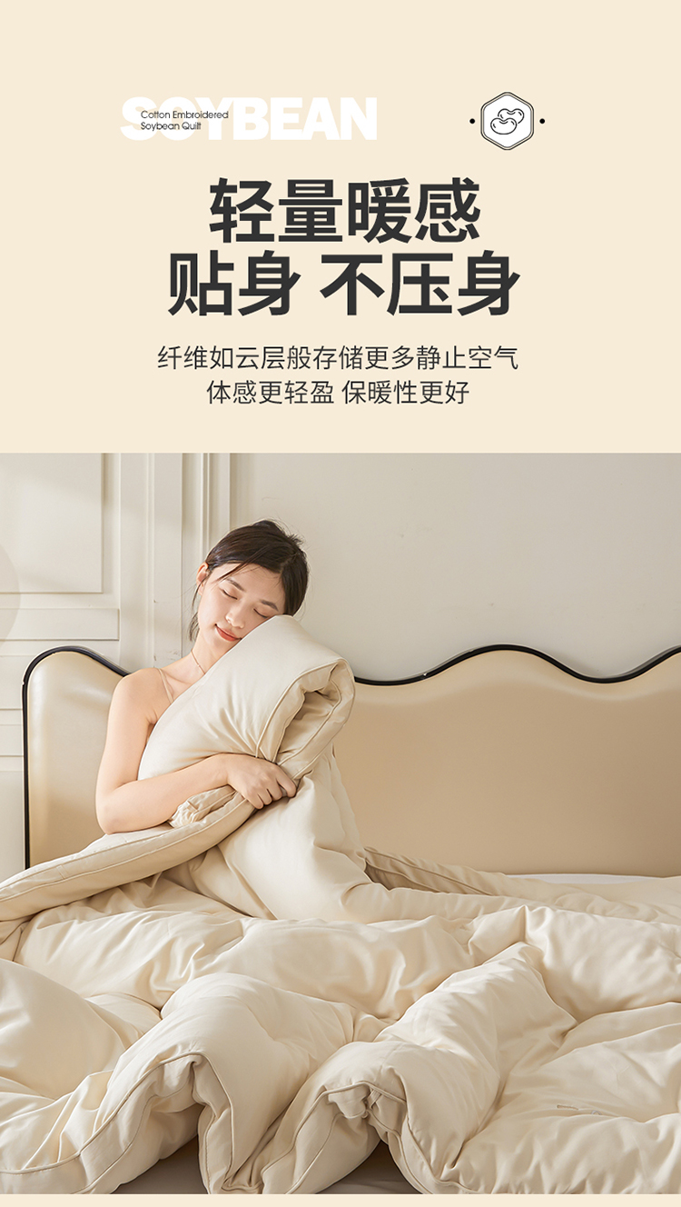 商品名称:2024新款60s全棉绣花冬被全棉冬被立体边被子被芯四季被春秋被夏被大豆被 米色