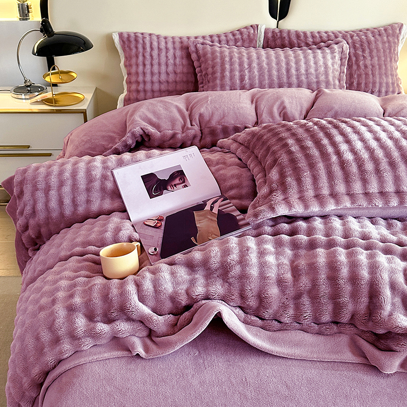 商品名称:芸锦豪 2024新款仿兔毛小泡泡兔兔绒兔毛绒四件套紫色