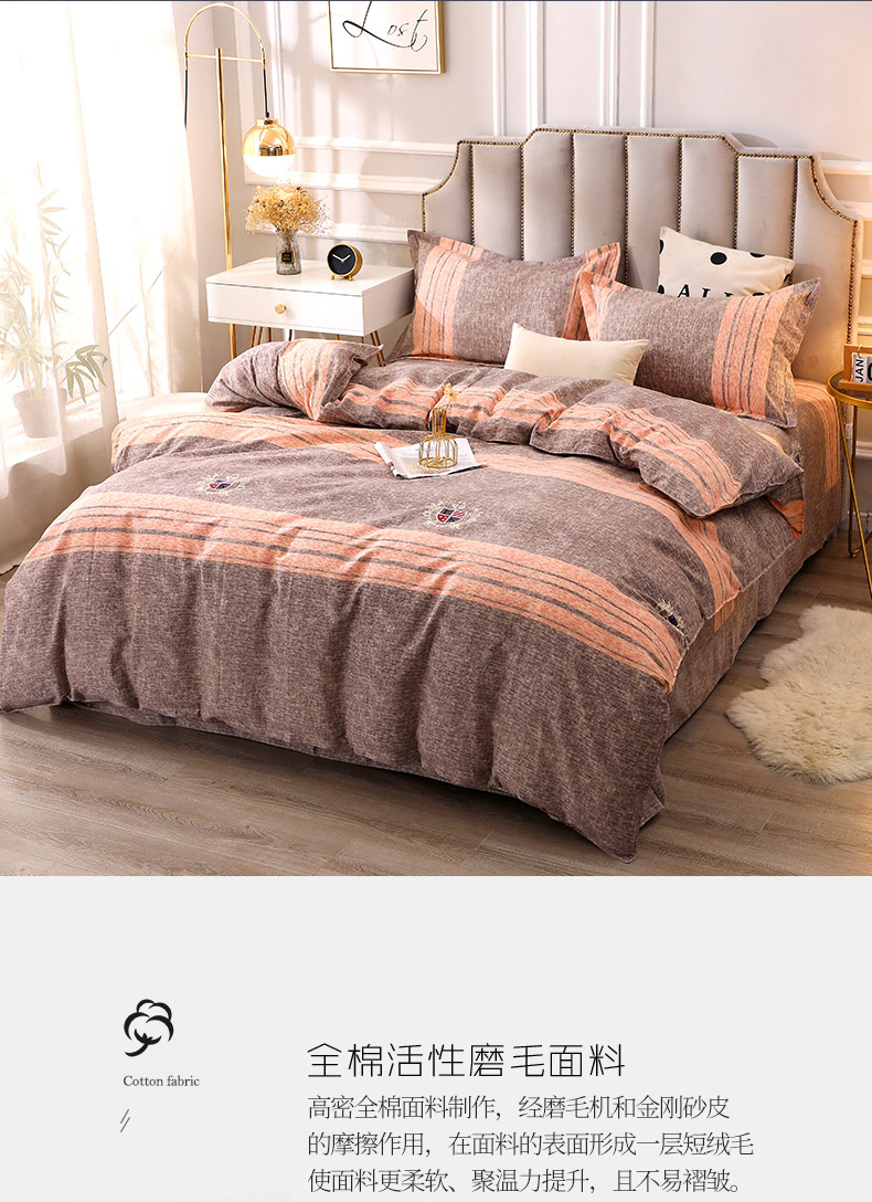 当前位置: 91家纺网 > 商品网购 > 床品套件 > 四件套 > 普通磨毛四件套 > 晶缦家纺 2024新款典雅系-全棉活性磨毛多规格四件套 路易时尚-灰