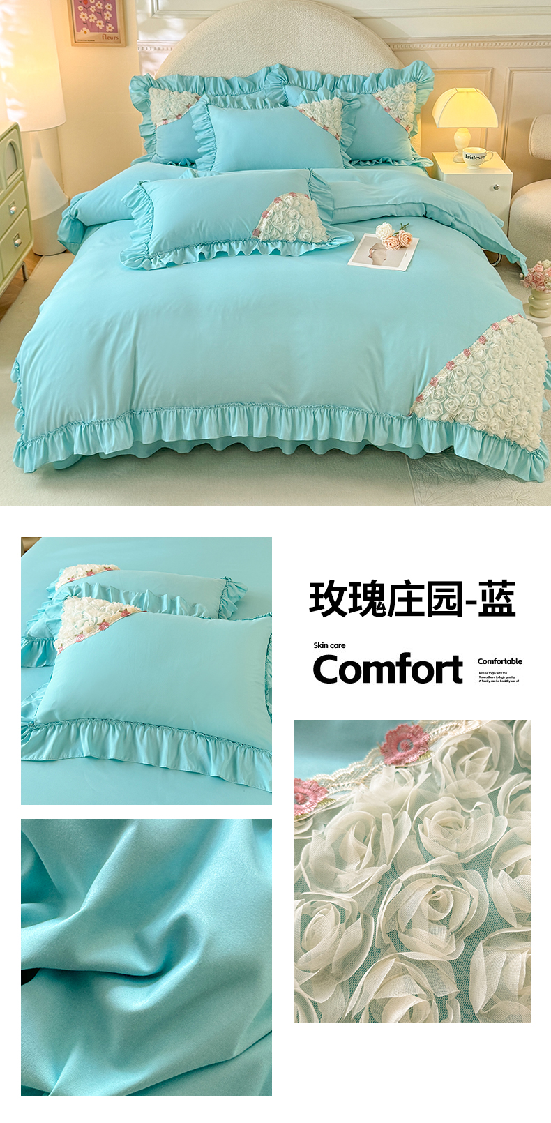 商品名称:芭比蔓家纺 2024新款亲肤磨毛四件套-玫瑰庄园 玫瑰庄园-蓝